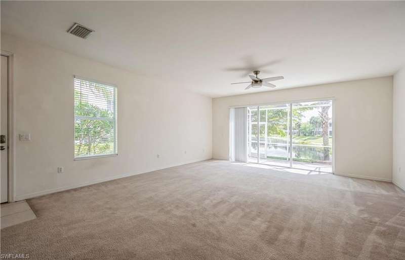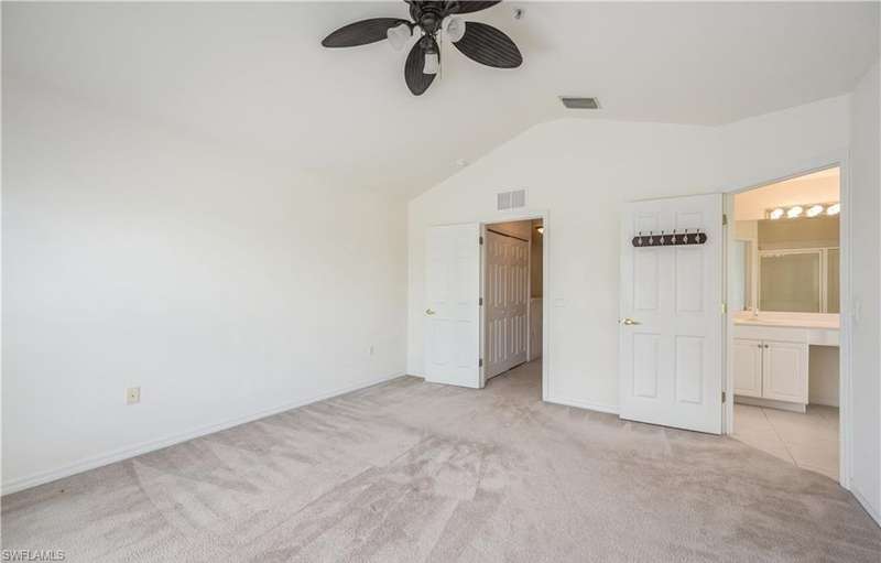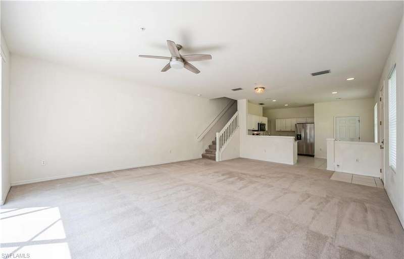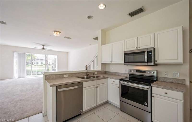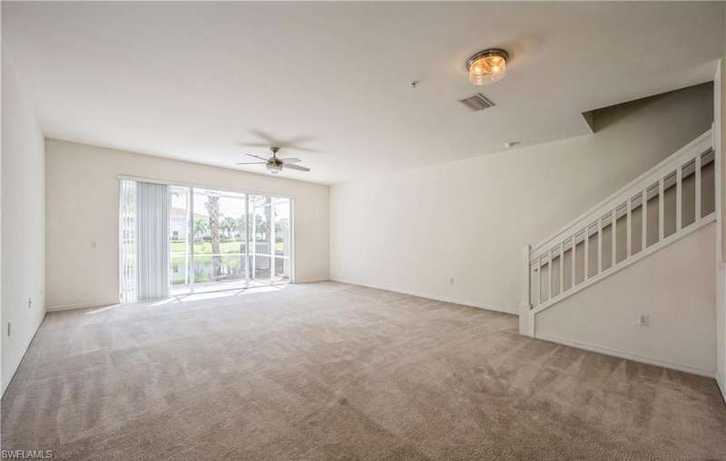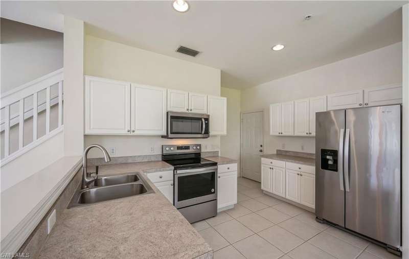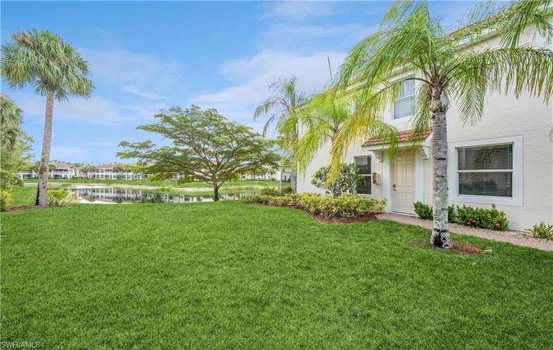 Gorgeous end-unit townhouse in the highly sought-after, quiet, gated community of Stratford Place.** Enjoy expansive lake views from the screened lanai and an inviting great room filled with natural light thanks to the three-panel sliding doors and desirable southern exposure. The main living area boasts 9 ft. ceilings and flows into a well-appointed kitchen featuring stainless steel appliances. A convenient half bath is located just off the kitchen. Upstairs, the in-unit laundry adds ease to everyday living. The primary suite offers a spacious walk-in closet and an en-suite bath with a walk-in shower. A third bedroom also includes its own en-suite access to the main bath. Generous storage throughout and an attached two-car garage provide plenty of room for all your needs, with additional guest parking available nearby. Residents enjoy outstanding community amenities including a pool and spa, basketball court, walking paths, and the security of a gated neighborhood. WiFi and cable TV