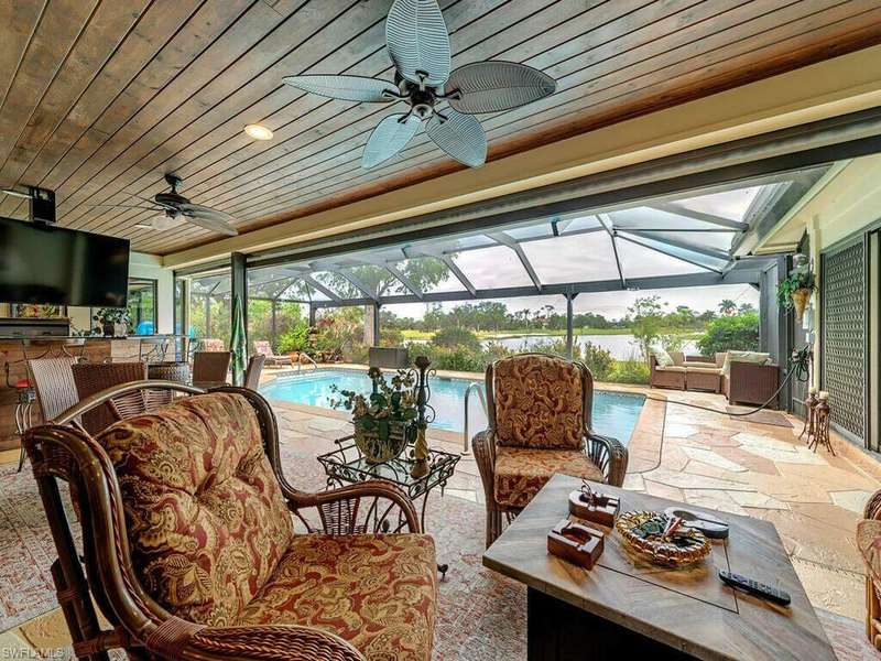 Welcome to your dream home! Enter this property through the charming front garden courtyard, complete with custom plantings, and prepare to be amazed by the stunning views that await you. The disappearing sliders in the great room open up to create an incredible 16-foot-wide panorama of the pool area, showcasing the serene lake and pristine golf course beyond. The great room is designed for versatility, offering ample space for both casual and formal living areas. It also includes room for a formal dining area, though the current owners have creatively used this space to accommodate a grand piano. Adjacent to this, you'll discover a chef's dream kitchen. Designed and crafted by the owner, a master carpenter, the kitchen features custom-built cabinets and a center island made from a single, full slab of quartz measuring an impressive 5x10 feet. The kitchen is further enhanced by upgraded stainless steel appliances, an 8x7-foot walk-in pantry-perfect for storing everything you need to host large gatherings-and a cozy breakfast nook with bay windows that offer picturesque views of the pool, lake, and golf course, often visited by graceful Snowy Egrets. Connected to the kitchen is a casual family room, an ideal space for relaxing, snacking, and watching TV. The home boasts three fully remodeled bathrooms, each updated with new frameless shower doors, vanities, and modern toilets. The luxurious master suite is truly a retreat, spanning 21x17 feet and featuring sliding doors that lead directly to the pool area. Step outside to the recently resurfaced pool area, adorned with elegant stamped concrete. The lanai includes a built-in summer kitchen and a new cage with large, unobstructed picture windows that frame the breathtaking views of the lake and golf course. The pool area also features see-through hurricane shutters that can be controlled remotely via your smartphone. This home is not only beautiful but also highly efficient. The owner has invested in 55 solar panels and two backup batteries, a $147,000 upgrade, resulting in an average electric bill of just $37 per month. Additionally, the property includes a private well, minimizing water costs. The garage is equipped with an electric car charger, and the driveway is scheduled to be upgraded with brick pavers in March. In addition, the roof was replaced in 2023 and the outside completely repainted in 2024. With every detail thoughtfully designed, this home offers unparalleled comfort, luxury, and sustainability. It's truly a property that has it all-and it's ready for you to call it home.