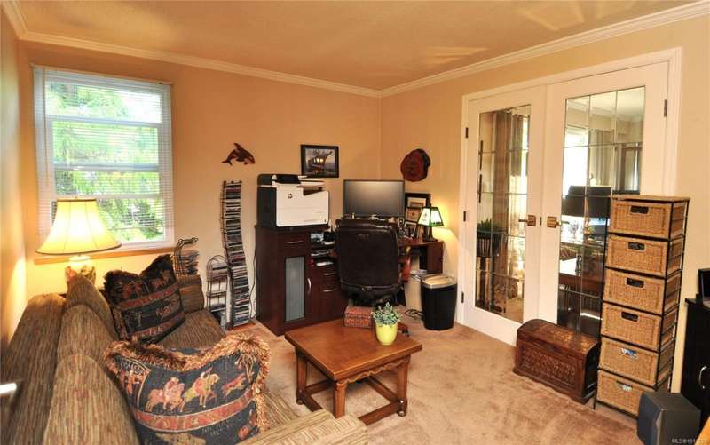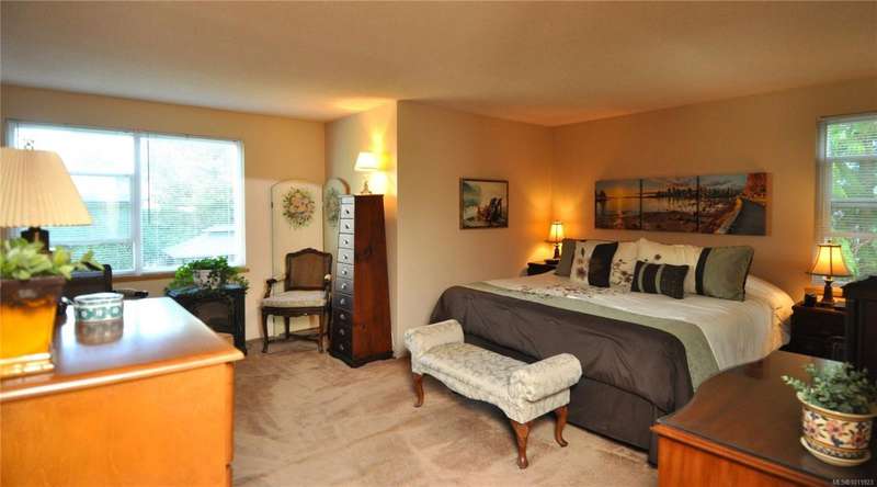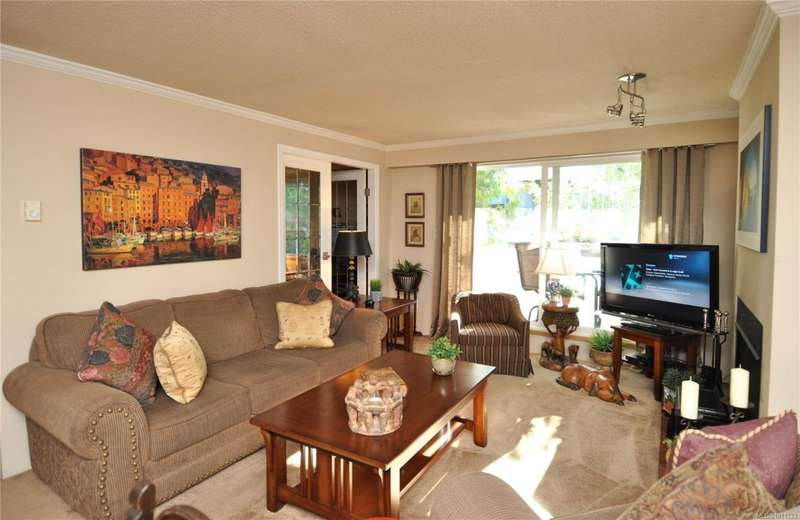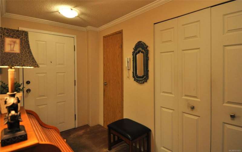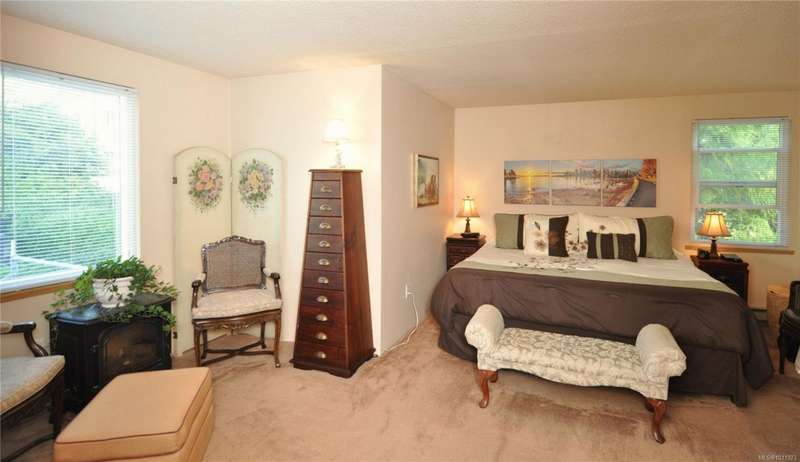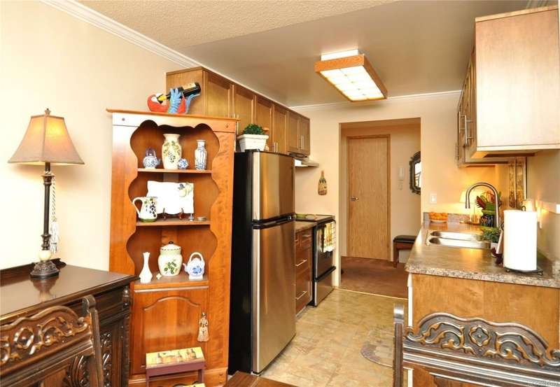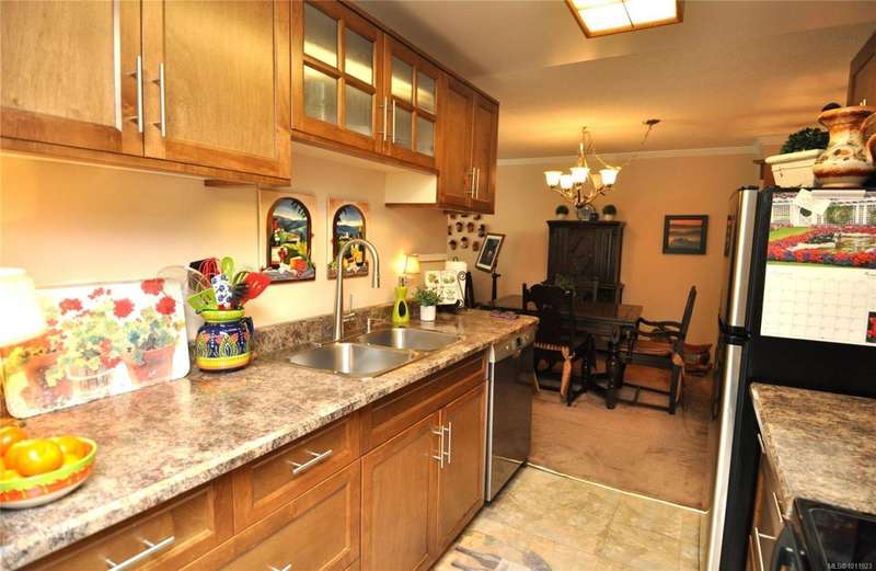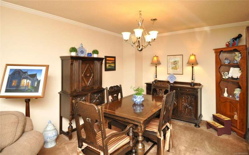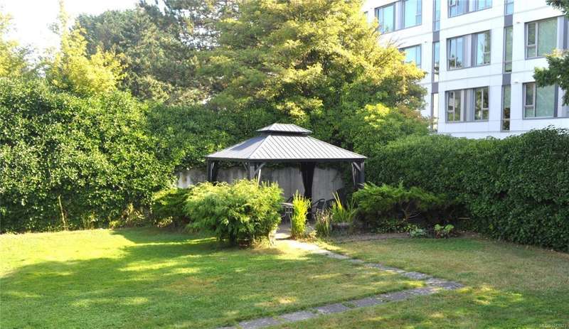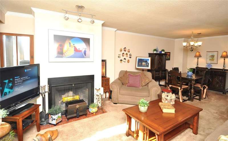 Maplewood?1068 Tolmie Ave-Fabulous central location so close to everything yet tucked away on a quieter street with easy access to transit, short walk to amenities including Mayfair shopping, coffee shops, restaurants and just a short drive to downtown Victoria. 3rd floor 2-bedroom, 1.5 baths corner suite close to 1000 S/F, in-suite laundry, huge 16.5'x16' primary bedroom with extra closets & 4-piece ensuite, 2nd bedroom (den/office) with additional French-Doors onto living room with rarely available wood-burning fireplace. Spacious dining room adjacent to functional kitchen, perfect for entertaining. Well situated on quiet back corner just steps down to the elevated 5000 S/F (approx) of residents designated green-space with covered gazebo, garden for veggies/herbs & BBQ area, just like having your own backyard to relax in. Professionally managed, such a lovely place to come home to. Secured parking/bike lockup+ carport visitors & extra parking. Workshop/storage lockers on main level.