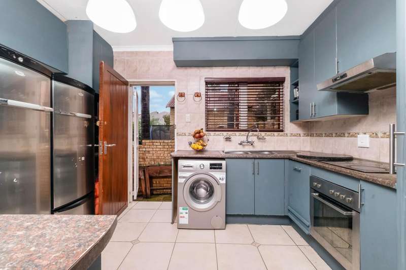 Your Perfect Family Home awaits in a Secure Complex This charming 3-bedroom simplex offers the ideal blend of comfort and security, nestled within a sought-after complex. Step inside and be captivated by the warmth of natural light cascading through lovely wooden window frames. Unwind in your luxurious master suite, a private haven featuring a spacious en-suite bathroom with both a shower and a bath. The air conditioner ensures year-round comfort, while extra-large built-in cupboards provide ample storage. Two good-sized family bedrooms create a cozy environment for children, sharing the family bathroom. An additional security gate offers peace of mind for parents. Designed with entertaining in mind, the open-plan kitchen seamlessly flows into a large lounge and dining area. This creates a perfect space for family gatherings and unforgettable evenings with friends. Step through from the living area into a dedicated braai room, perfect for year-round entertaining. Glass doors lead out from the braai room to a quaint garden with a paved patio, effortlessly merging indoor and outdoor living. This home prioritizes both convenience and security. Park your vehicles securely in the double garage with automated wooden doors for added ease. An additional covered carport provides even more space for parking. Move right in and enjoy the peace of mind that comes with blinds, beams, and an inverter to keep the lights on during outages. This fantastic opportunity won't last long. Contact us today for a viewing and make this your forever home!