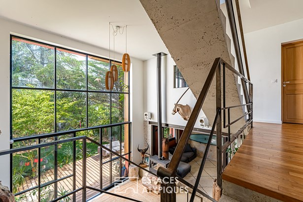 Located in one of the most sought-after residential neighborhoods of Chatillon, on the edge of Clamart, this 1950s house has been completely renovated by an architect in a contemporary loft style. It offers 210 m2 of living space on a plot of over 400 m2. A unique location, secluded and away from the hustle and bustle, just a ten-minute walk from Maison Blanche Park.