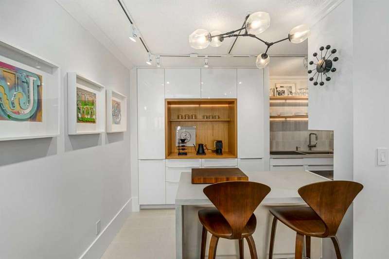 OPEN HOUSE: Thursday, Nov 27 from 4:30 - 6:30 and Sunday, Nov 30 from 11:30 - 1:30. Step into a refined, modernized 2-bedroom, 1.5-bath home in a quiet 25+ community surrounded by mature green space. Nearly 1,000 sq ft of thoughtfully redesigned living offers a calm, contemporary feel with upgraded cabinetry, new appliances, gallery-style lighting, and a dedicated coffee bar. The layout is open and efficient, with two well-sized bedrooms, updated baths, durable new flooring, and convenient in-suite laundry. Located steps from transit, shopping, and everyday amenities, this move-in-ready residence delivers elevated design, comfort, and exceptional value in one of Acadia’s most established neighbourhoods.