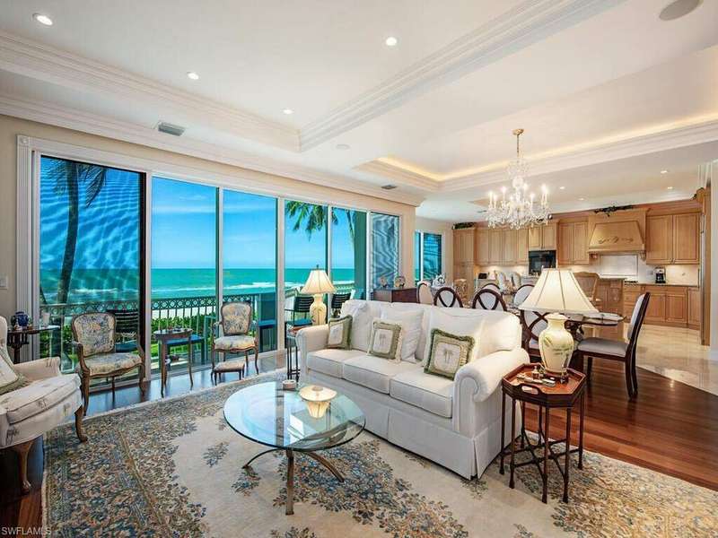 Accessed via a quiet lane, this incredibly unique residence represents the best value in single family beachfront living and provides no shortage of unrivaled scenery through its floor to ceiling windows and terraces. The home, built in 2003, encompasses three bedroom suites, a study, three full bathrooms + a powder bathroom, a private three-floor elevator, wet bar, multiple west-facing terraces, as well as stunning floor-to-ceiling high impact windows and sliding doors that showcase glistening Golf of Mexico views. The master suite spans across the entire top floor and features a Gulf-front study, fitness studio, and sprawling dressing room. Providing the utmost in privacy, the verdant Gulf-side backyard meets the sandy edge of the beach and is further highlighted by a beachside pool and spa. In addition to the copious features found within, this beachfront home is also conveniently close to the chic Fifth Avenue restaurants and boutiques that make living in Naples a true delight.