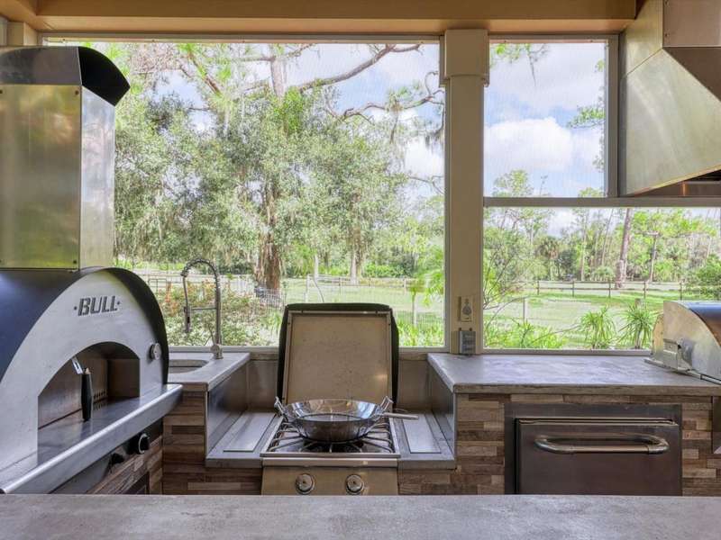 COUNTRY FLORIDA LIVING with All the modern Conveniences. ATTENTION PILOTS YOUR VERY OWN PRIVATE AIR STRIP. TURNKEY FURNISHED 3-bedroom 2 bath screened lanai with pool, hot tub and outdoor kitchen. House comes a paver walkway to your own cabana that sleeps 2. Unique rental with the best views of wildlife. Deer/turkeys Galore. The OUTDOOR KITCHEN was installed by a professional builder/owner. You have to try the pizza oven. Fire pit is fantastic. Fireplace works see picture. The hammocks are ready for you. Pet friendly rental. Available for the season or longer if you decide. Short drive to downtown Sarasota. This gated community feels like you are in the country, but it is a short drive to Sarasota downtown eateries, entertainment, beaches and more. 10 Acres of fun. Available for the Season or short term. The rental rate is the seasonal rate. Call for details if you need rental different time period. There is a 13% tax added for rental under 6 months. Nonrefundable pet fee and owner approval needed. Move in ready.