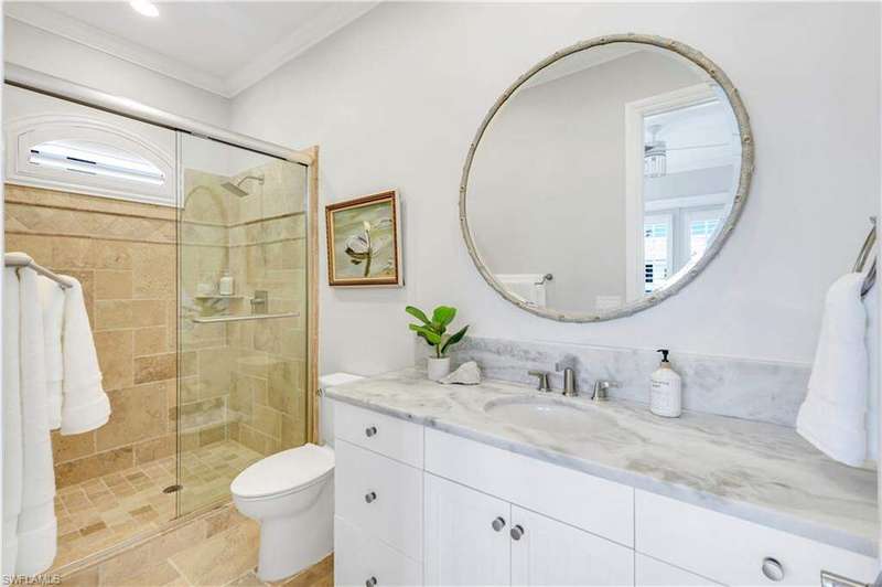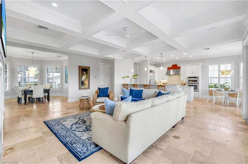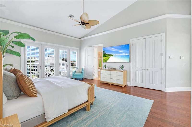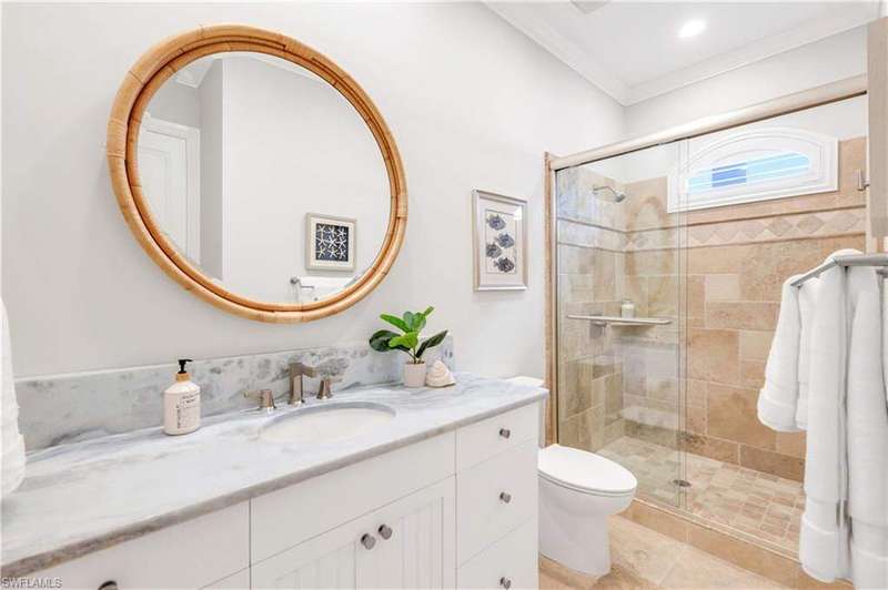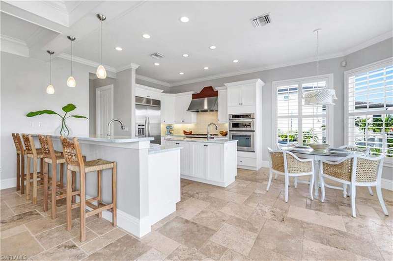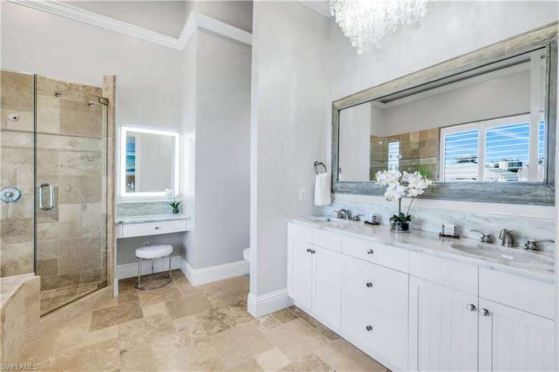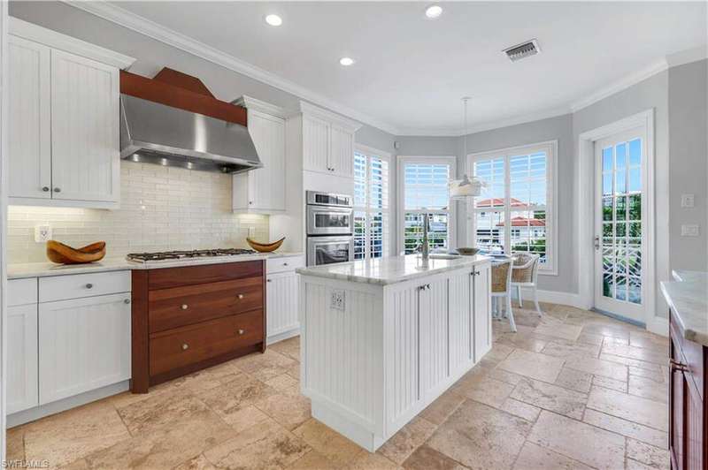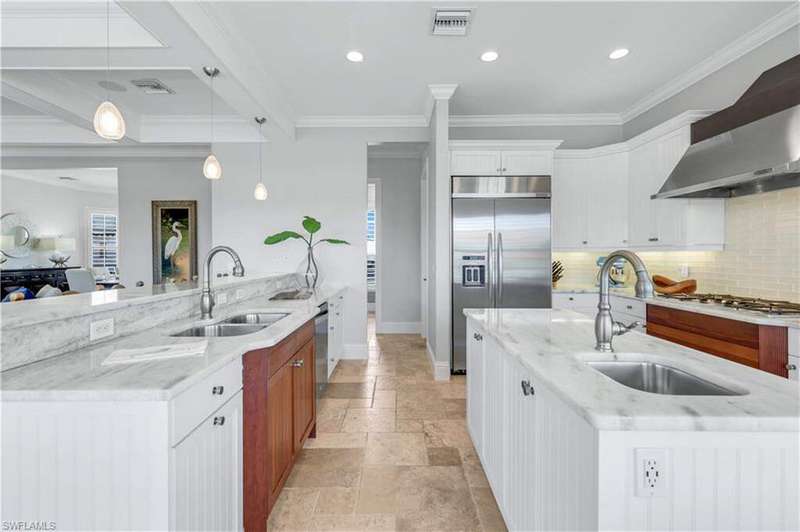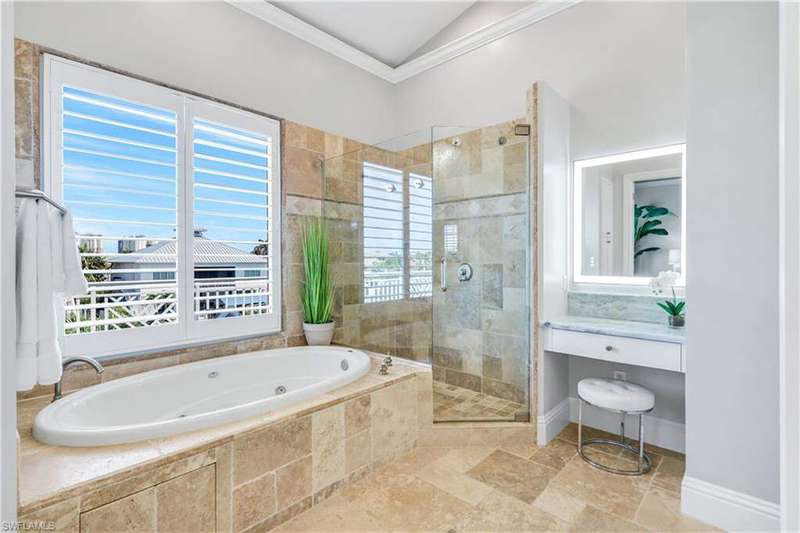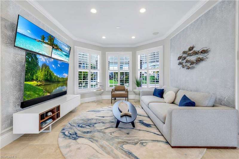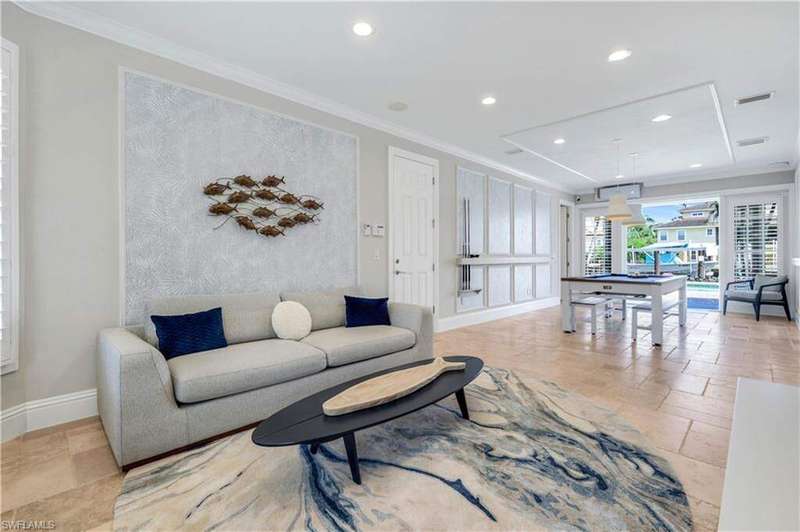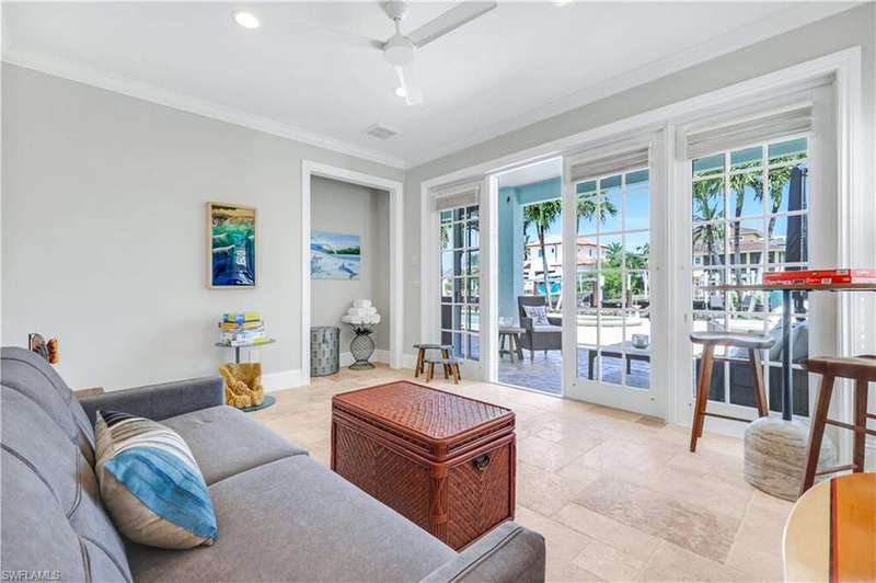 Luxury Waterfront Smart Home in North Naples - Gulf Access, No HOA, Weather Wise Experience luxury coastal living in this custom-built Stiles-Sowers 3-story smart home with direct Gulf access via Wiggins Pass, Pool, Spa, boat dock and countless upgrades! Designed for storm readiness, the property includes impact-resistant windows, whole house generator, flood panels, buried LP gas tank, multiple sump pumps, and elevated pool equipment housing. Integrated smart-home and security systems provide remote control of lighting, climate, music, temperature, and security for effortless living. The ground level includes a spacious game room with billiards, full bath, and cabana suite, plus multiple garages with epoxy floors, built-in storage, refrigerators, and workbench-perfect for guests, in-laws, or hobbyists. The main living level features an open-concept coastal design with coffered ceilings, travertine stone flooring, quartz counters, and custom cabinetry. A formal dining room with casement windows, gourmet chef's kitchen with gas range, oversized island, and gathering bar, plus a wet bar with wine cooler and ice maker, make entertaining seamless. A gas fireplace with lighted built-ins adds warmth and sophistication. The owner's suite spans the top floor with a private den/office, spa bath with Jacuzzi tub, custom closets, wood flooring, and private balcony. Additional bedrooms are generously sized with designer finishes. Enjoy resort-style outdoor living with multiple balconies, covered seating areas with ceiling fans, integrated speakers, expansive paved deck, and a heated pool & spa. The property's captain's walk dock, 15,000 lb boat lift, and seating deck create the ultimate waterfront retreat. Set on a professionally landscaped, fenced lot with dual brick paver driveways, this premier address west of US-41 is walkable to Delnor-Wiggins State Park, white-sand beaches, shopping, dining, entertainment and top Naples schools.