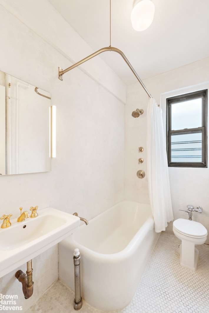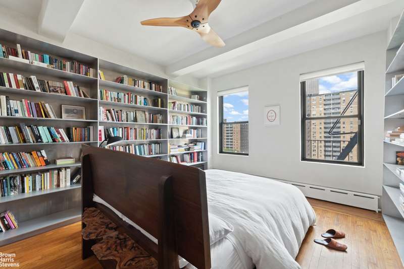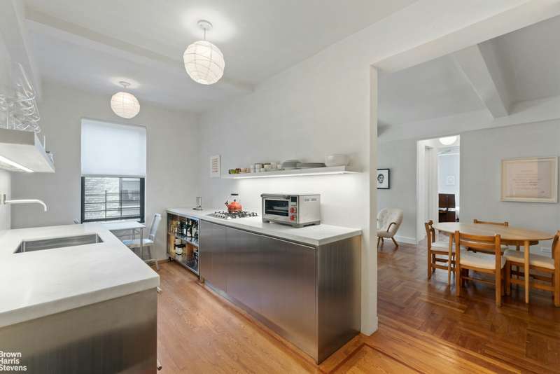 Enter into an impeccably updated windowed chefs kitchen with Miele stovetop, dishwasher and washing machine, Sub-zero refrigeration drawers, Wolf convection oven and EuroCave wine fridge. The custom stainless steel cabinetry and stunning white marble countertops are further enhanced by the incredibly generous storage, which includes two oversized closets and a built-in wall pantry. The living/dining room offers an elegant, spacious space to relax and entertain with large windows that allow beautiful, soft light to spill across the stunning parquet floor. The windowed bathroom has the original soaking tub, textured plaster walls and designer lighting. A hallway holds a closet large enough for wardrobe and additional storage. There is a superb sense of space in the oversized & bright bedroom, with plenty of room to breathe, dream and gaze out of the large windows all the way to the World Trade Tower. You will also find a stunning bespoke wooden armoire and custom aluminum book cases for additional ease of living.