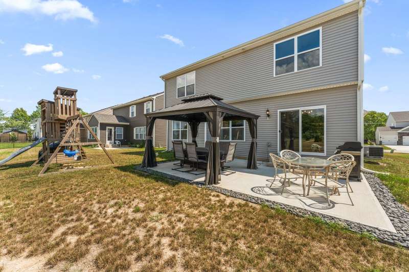 Why wait to build??? Better than New... this stunning 2 story home with FINISHED basement on a golf course lot is just 2 years old and ready for new owners. The open concept main floor features 9' ceilings, neutral paint, and vinyl plank flooring throughout. Upgraded cabinets with stainless appliances, pantry, island, and large dining area completes the kitchen. Living room provides gorgeous gas fireplace and plenty of natural light. 1/2 bath, office space, and laundry room with added cabinets and storage leading out the insulated and drywalled 2 car garage. Upstairs the main bedroom has a walk in closet and private bath with double vanity and shower. 3 good sized additional bedrooms upstairs with ample closet space and a full bath. The basement is newly finshed with epoxy floors, 2nd living area, workout area with egress window, and storage space. Outside you'll find a 22x16 patio with gazebo looking out on the golf course. Located on a quiet street but just minutes away from Youche Country Club, the Crown Point Square, Fairgrounds, & the YMCA.