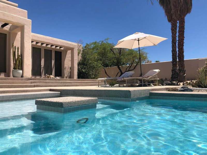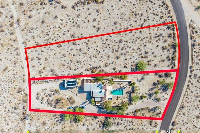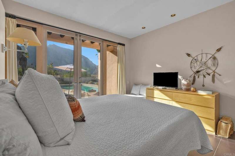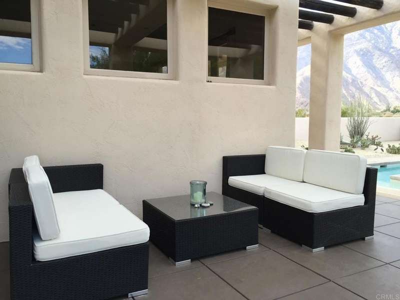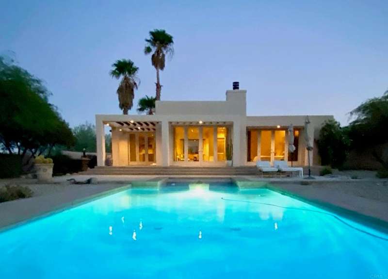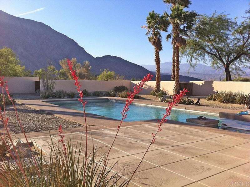 Exceptional Desert Retreat with Custom Architectural Details & Adjacent Lot in Verbena Estates area on 2.21 acres. Private resort-like desert retreat with expansive walled compound is surrounded by beautiful gardens, a perfectly framed view of Indian Head Mountain and Panoramic desert views including gorgeous sunsets over the Santa Rosas. Designed by renowned Laguna Beach Architect this stunning residence showcases custom floor to ceiling windows, doors and skylights that engulf you in the light, peace and beauty of the desert. The open-plan living area with 9 and 10-foot ceilings, 'Santa Barbara' finished walls inside and out, extensive recessed lighting-many on dimmers, built-in speakers-ideal for entertaining indoors and out. The bathrooms feature elegant limestone counters, handmade tile showers and tubs, and designer quality fixtures and lighting. Enjoy seamless indoor-outdoor living with expansive concrete patios, a built-in BBQ area, extensive outdoor lighting and the contemporary 16x32ft. pool. All surrounded by professionally designed landscaping and dramatic mountain views. The property includes a two-car garage plus a detached, extra-large garage-perfect for a potential ADU, RV or all your desert toys. On 2+ Acres experience the best of desert living in this superior location just minutes from shops, dining, Borrego Palm Canyon Trail, and endless outdoor adventure. Walk to the historic Palms Hotel for dining, live music and cocktails. Enjoy spectacular wildflower displays in spring and spectacular star gazing at night. This is truly a one-of-a-kind opportunityschedule your private showing today! -Owned Solar -Revenue potential as a Vacation Rental in a town that supports VRBOs which is rare! -No HOA'S -New Kohler Toilets, Bosch dishwasher, microwave, cooktop & oven. -Designer walled compound.