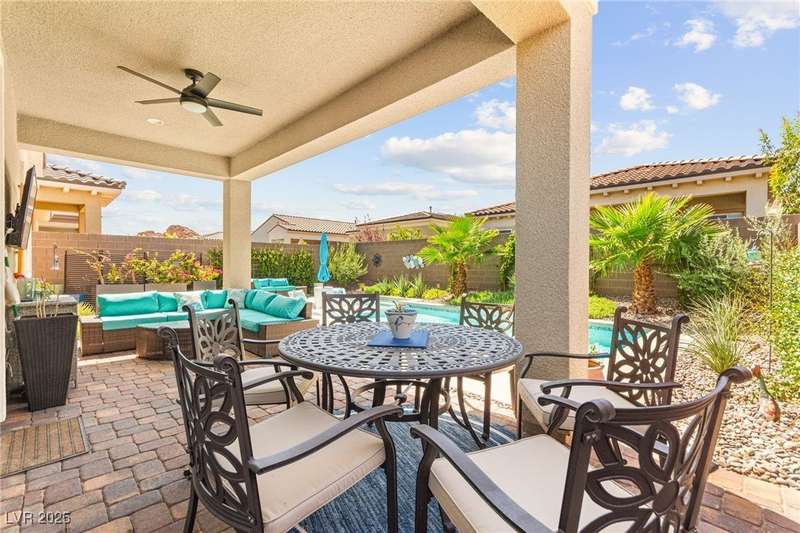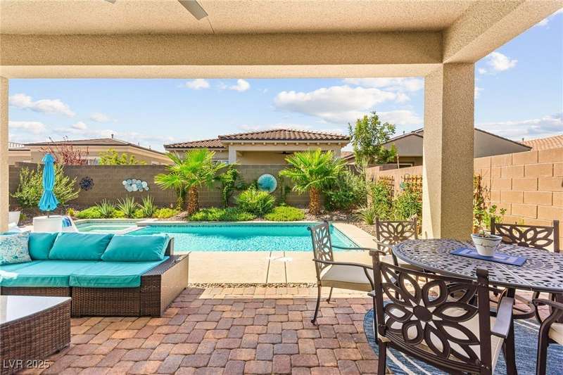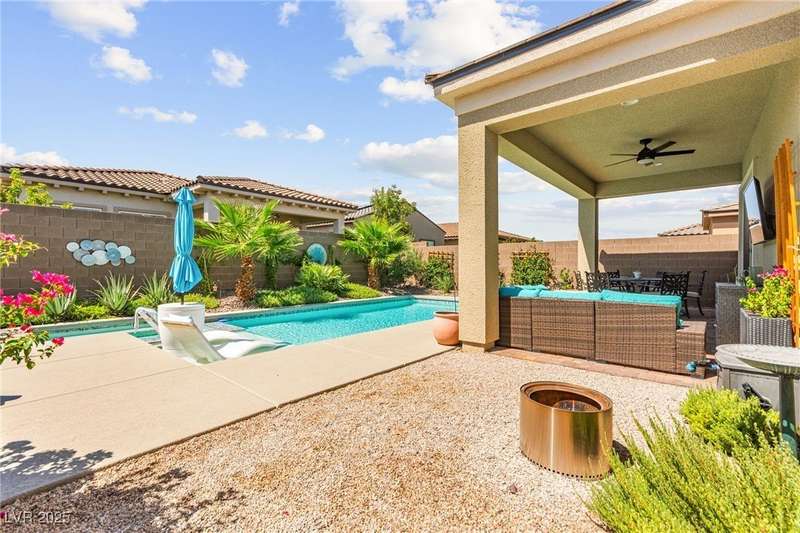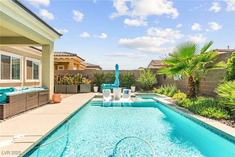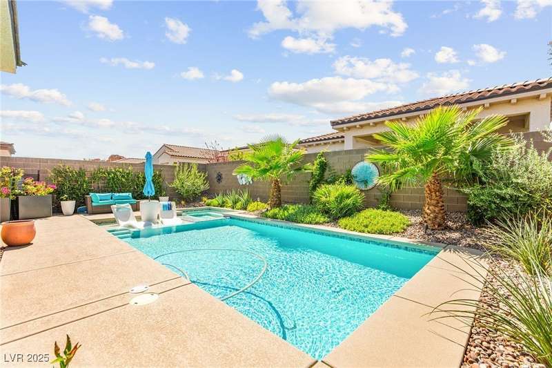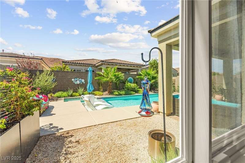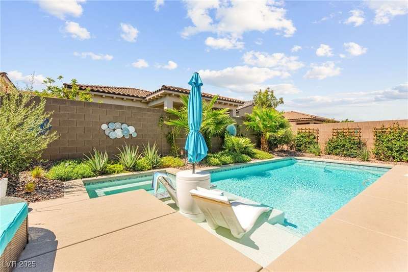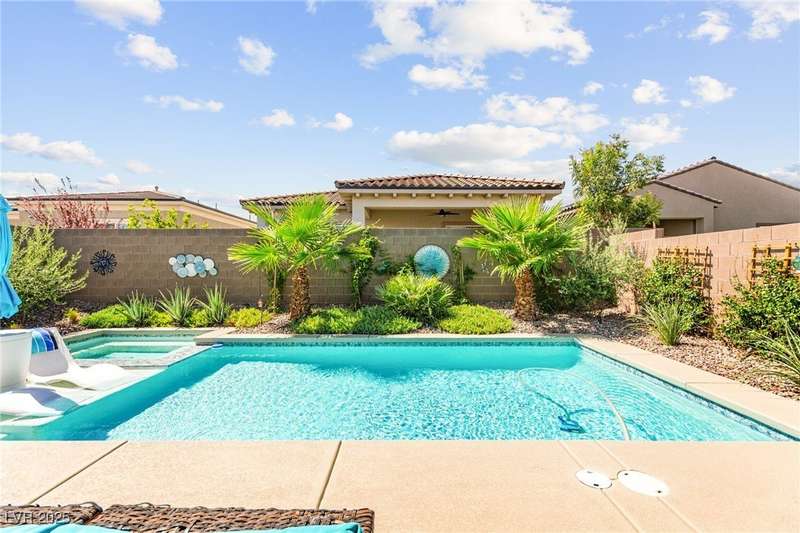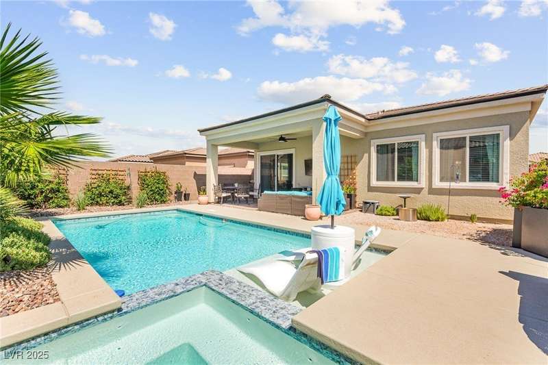 Welcome to this stunning single-story home in the highly desirable Lake Las Vegas community. Featuring 3 spacious bedrooms and 2 bathrooms, this residence combines comfort with modern elegance. Enjoy soaring high ceilings, recessed lighting, and an open layout enhanced by upgraded door heights. The gourmet kitchen boasts granite countertops and ample cabinetry, perfect for entertaining. A built-in electric fireplace creates a warm focal point in the living area. Step outside to your private backyard oasis with a sparkling pool and spa, ideal for relaxation or hosting guests. Energy efficiency is maximized with solar panels that will be paid off at closing and come with 24 years remaining on the warranty, offering long-term savings. This home offers the perfect blend of luxury, function, and resort-style living in one of Henderson’s most prestigious communities.