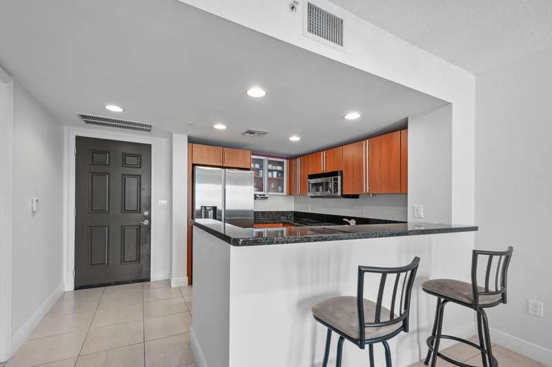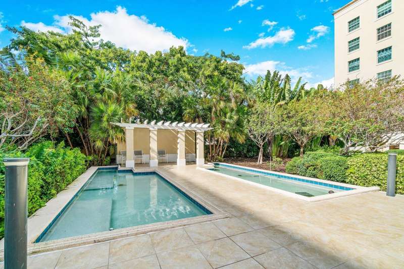 Impeccably maintained 2 bedroom / 2 bath condo with balcony overlooking the pool & greenspace. Impact windows with plantation shutters. Split floor plan w wood & tile flooring, granite kitchen, stainless appliances, full size washer & dryer, & 2 assigned parking spaces! Water, cable, & internet included in monthly fee. Front desk w concierge. Amenities include pool, fitness center, steam room, & sauna. Great Clematis location near restaurants, shopping, cultural venues, convenient to bus route. Pet friendly (2 pets up to 30 lbs total). Close to Palm Beach, I-95, golf, water sports, & international airport.
