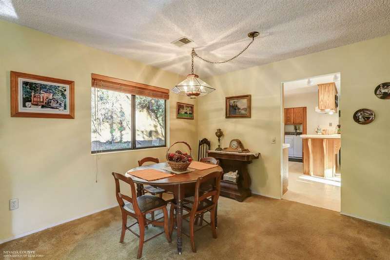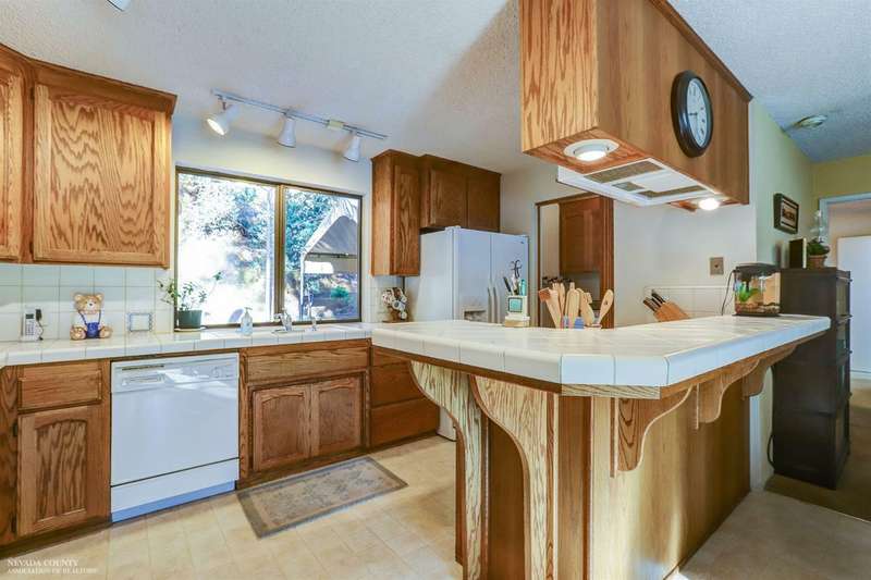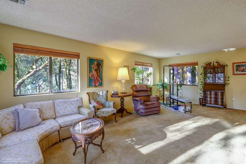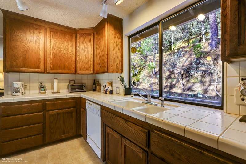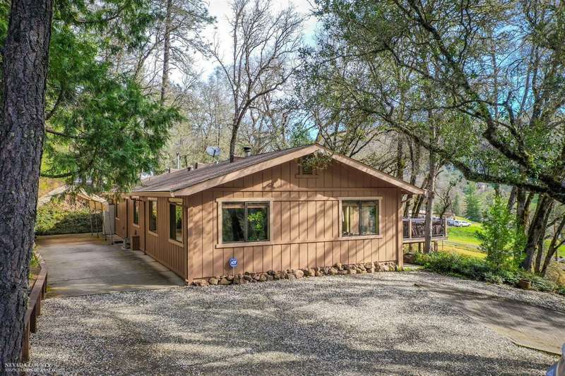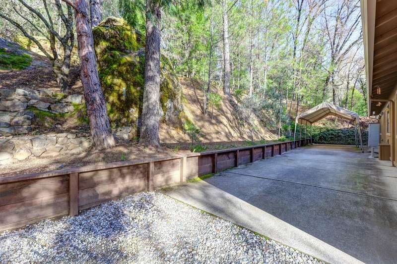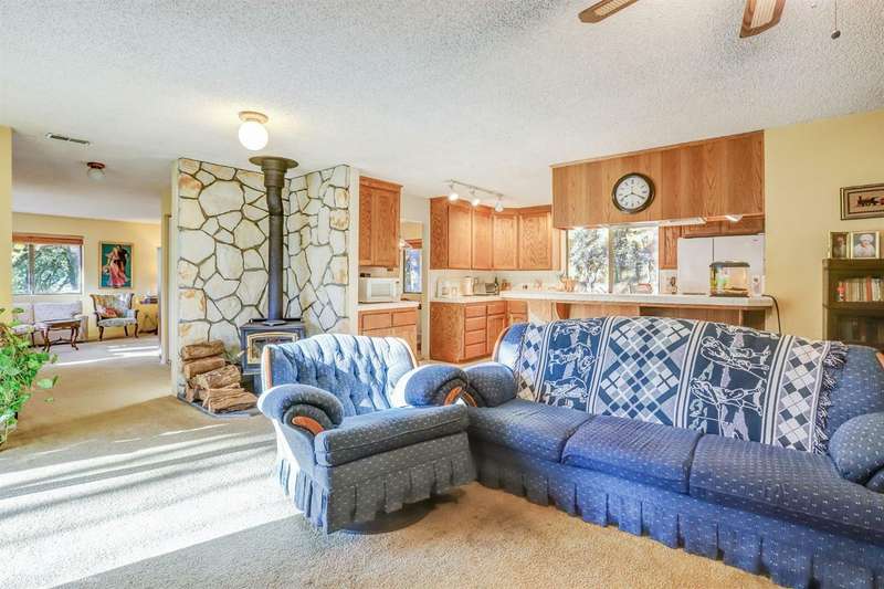Large square footage single story home overlooking the view of the treed hillside. The long circular driveway leads to a very level building site and parking area that could easily accommodate a half dozen cars and all your toys and the neighbors would never see them! Beautiful front deck is a wonderful spot to enjoy the tree view. The home has a formal double door entry, formal living room, separate formal dining room, contemporary kitchen with breakfast bar and access to the laundry and mud room. Efficient wood stove in the family room keeps the home toasty on cool evenings. The master is very spacious and separate from the secondary bedrooms which share a jack n jill bathroom. Downstairs is a large utility room that would make a fabulous tasting room and wine cellar! The local elementary school is just a stones throw away....your children could walk to school! Something here for everyone!
