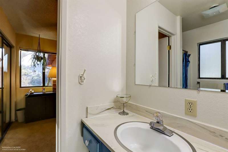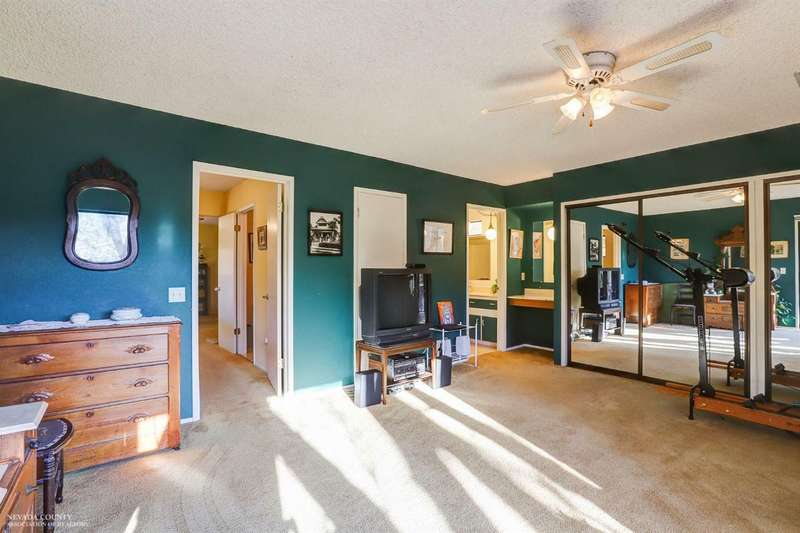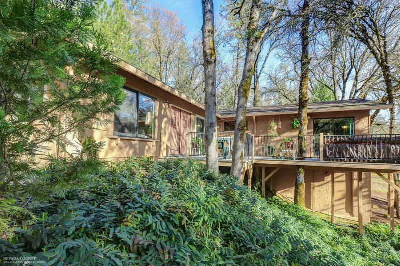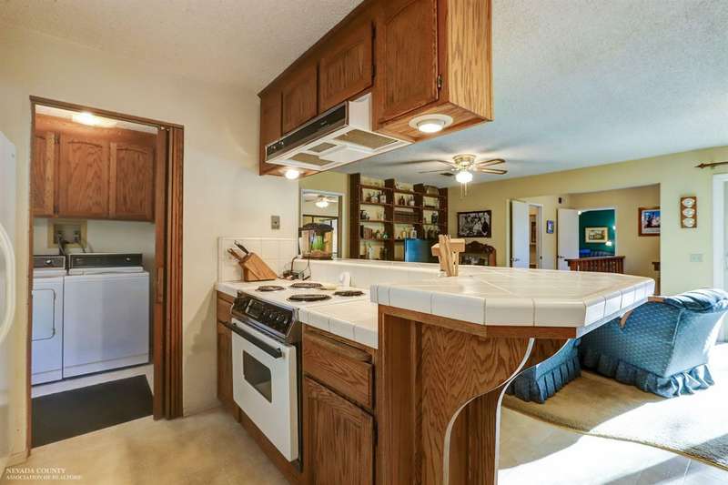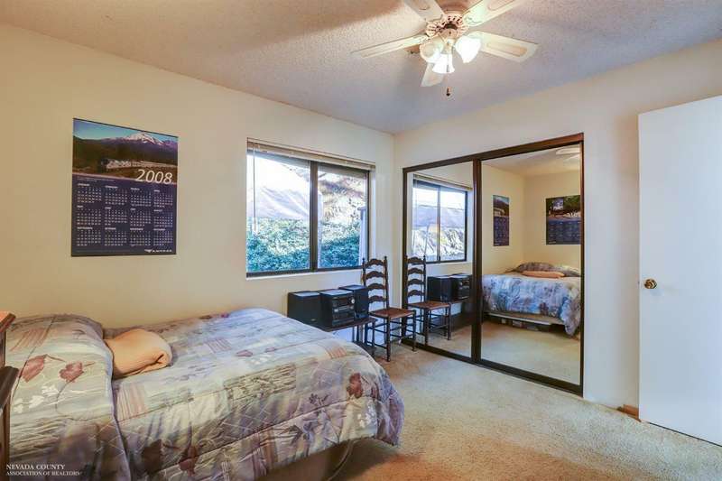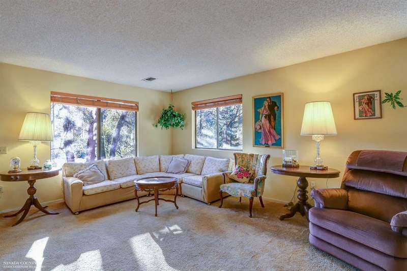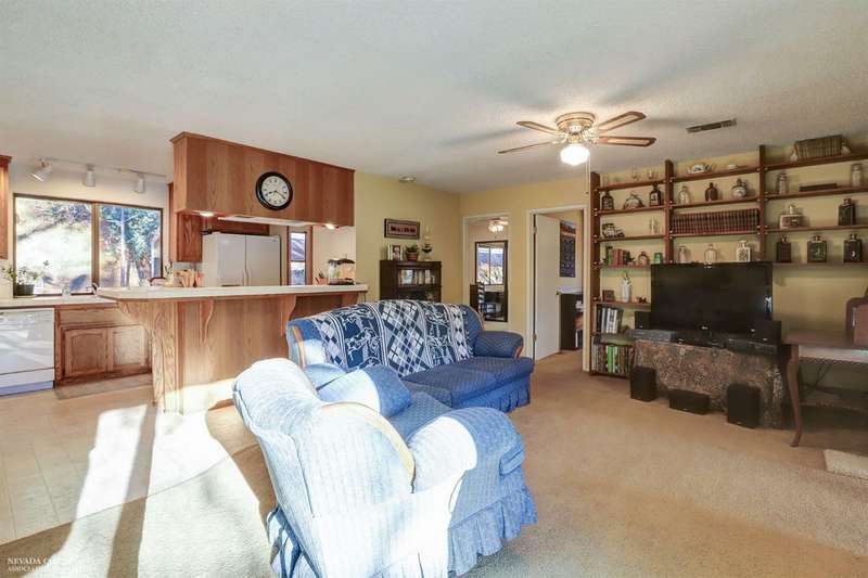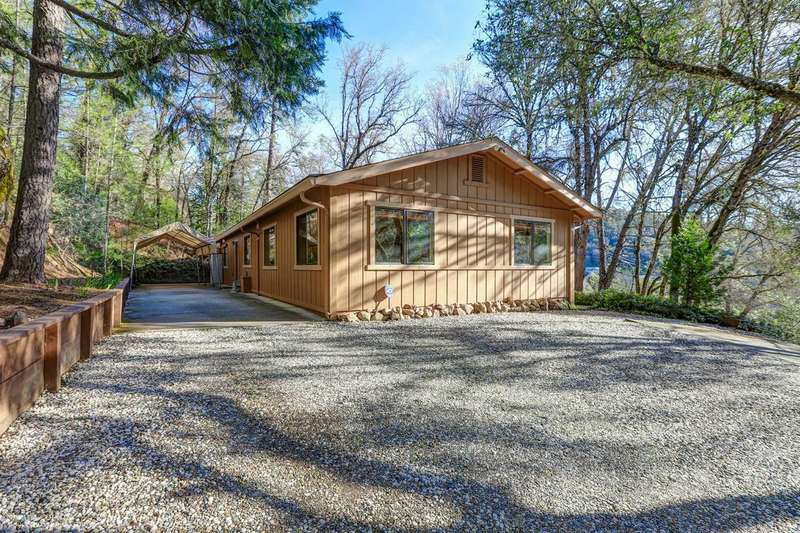 Large square footage single story home overlooking the view of the treed hillside. The long circular driveway leads to a very level building site and parking area that could easily accommodate a half dozen cars and all your toys and the neighbors would never see them! Beautiful front deck is a wonderful spot to enjoy the tree view. The home has a formal double door entry, formal living room, separate formal dining room, contemporary kitchen with breakfast bar and access to the laundry and mud room. Efficient wood stove in the family room keeps the home toasty on cool evenings. The master is very spacious and separate from the secondary bedrooms which share a jack n jill bathroom. Downstairs is a large utility room that would make a fabulous tasting room and wine cellar! The local elementary school is just a stones throw away....your children could walk to school! Something here for everyone!