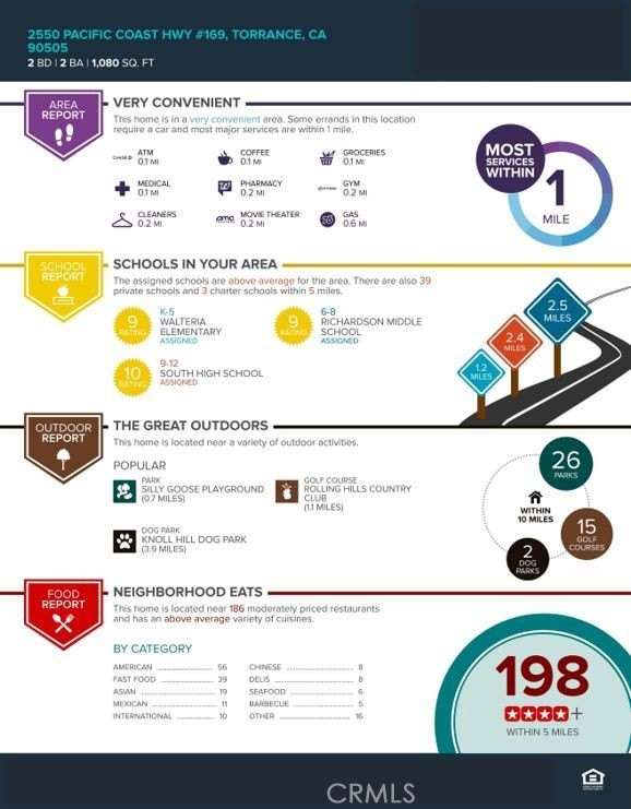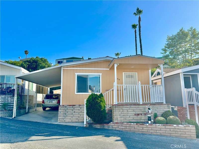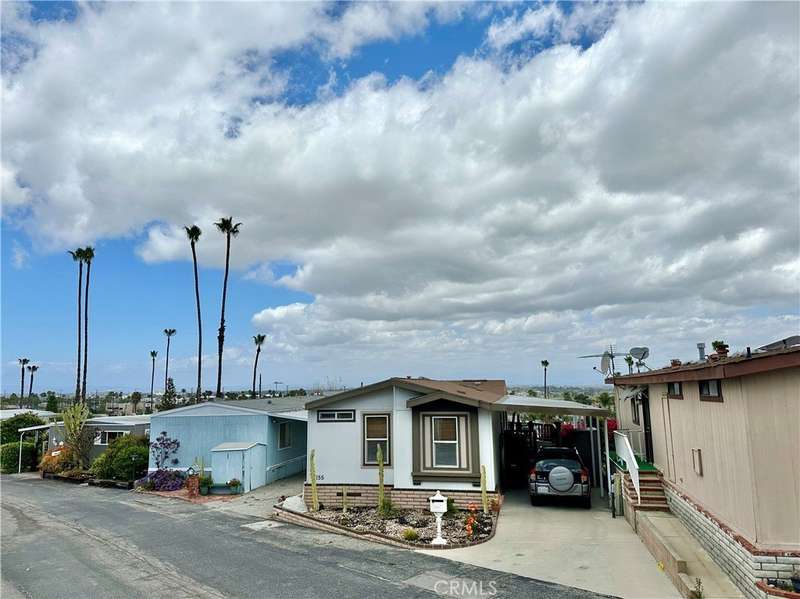 Tucked away in a quiet location backing to a serene hillside, this remodeled home offers tranquil living in the heart of the Skyline Mobile Home Park in Torrance, nestled near Rancho Palos Verdes. As the community transitions from 55+ to all-ages, this is a rare opportunity to enjoy resort-style living in a peaceful, convenient setting. The welcoming front deck is elevated by a surrounding brick planter bed, providing a panoramic vantage point with views stretching across the South Bay to Downtown Los Angeles and out to the majestic San Gabriel Mountains, where twinkling city lights create a stunning evening backdrop. Positioned to showcase the view, the spacious living room features real hardwood floors, soaring cathedral ceilings, and a neutral palette throughout the open-concept layout. The dining room is well-connected to the remodeled kitchen by a large breakfast bar perfect for entertaining. Your kitchen is outfitted with tile flooring, plentiful oak cabinetry, a side service door, and a full suite of appliances including a gas range, built-in microwave, dishwasher, and refrigerator. Down the hall, you will find extra linen cabinetry, a coat closet, and a laundry room complete with side-by-side washer and dryer, plus additional built-in and closet shelf storage. The updated hall bathroom serves both guests and the secondary bedroom, which includes a large closet with built-in shelves and a cheerful window. Your primary suite is spacious and private, featuring a walk-in closet, windows on 2 sides, view of the patio with lush landscaping, and an upgraded full en-suite bathroom with modern fixtures. The 2 car covered carport leads to a hand-built storage shed, perfect for tools or hobbies. Nearby conveniences include Rolling Hills Plaza, with Whole Foods, Trader Joe’s, AMC Theatres, Starbucks, restaurants, and shopping. The location also offers quick access to medical centers, golf courses, and the scenic South Bay beaches, and coastal enclave of the Palos Verdes Peninsula. Skyline Mobile Home Park offers exceptional amenities including a sparkling heated pool, spa, shuffleboard, clubhouse with kitchen, billiards, darts, library, and putting greens. Join ongoing social activities such as yoga, tai chi, karaoke, poker, bingo, line dancing, and more in this vibrant community. This move-in ready hillside retreat offers a rare blend of comfort, convenience, and views. This is your chance to own a piece of Skyline living and move in just in time for summer!