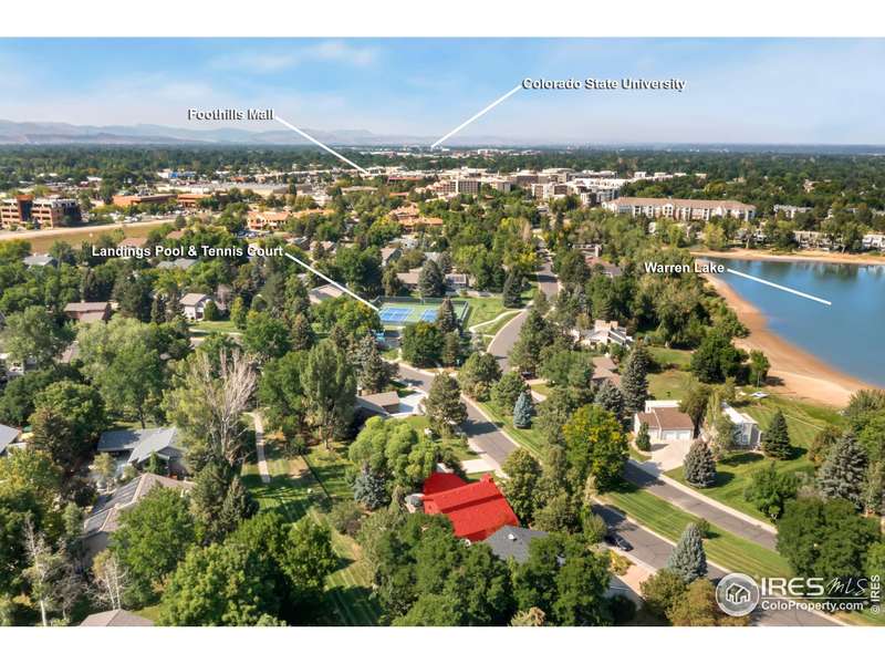 One of the best locations in all of Fort Collins! Situated between HOA owned green space behind the home, to Warren Lake a stones throw away from the front yard, with the HOA tennis courts and swimming pool just half a block away! The home boasts a main level primary bedroom and bathroom with a comfortable living room off the main entry, open kitchen and family room with wood burning fireplace on the upper level, study/office loft above the kitchen, two bedrooms and full bathroom on the lower level, and an unfinished basement. The yard is set up for entertaining, with a huge wood deck off the kitchen, an additional wood deck off the primary bedroom, a flagstone patio between the two decks, and a side yard set up for either entertaining, or a small dog run. Both the furnace and AC replaced in 2024, and majority of windows replaced in 2018! Seller is providing a $9,000 Seller Concession to replace the driveway after closing. Use of Warren Lake is included in the HOA, as well as access to the nearby pool and tennis courts! The home has been pre-inspected. Come take a look!