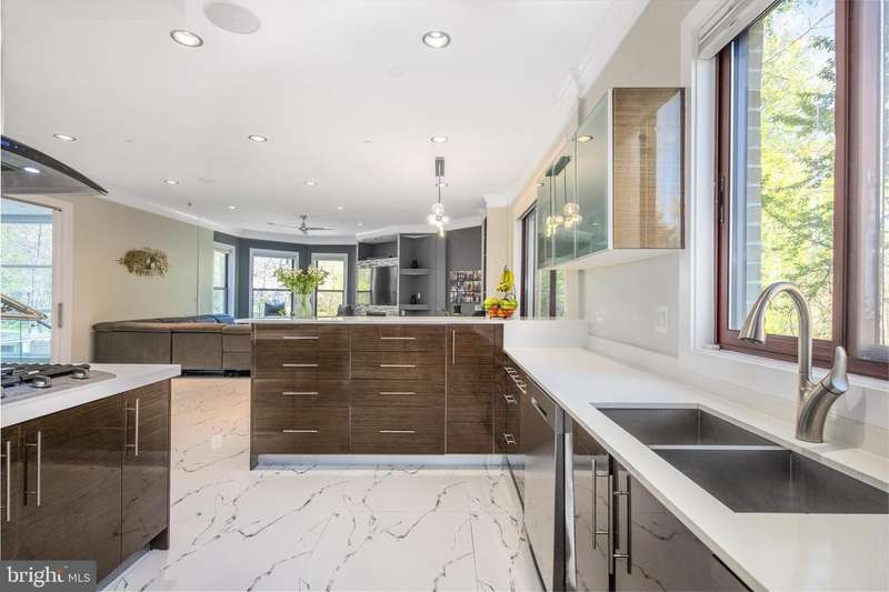This extraordinary 6-bedroom, 9-bath, 13,000+ sq ft estate blends blends timeless French château elegance with bold ultra-modern design. Created by an accomplished architect for his personal legacy residence, it features soaring glass walls, floating staircases, and hand-selected finishes. A dramatic two-story Living Room with artisan chandelier sets the tone, flowing into a sleek Kitchen, formal Dining Room, and expansive Family Room. Two main-level Bedrooms include a private Guest Suite with separate entry and garage access are ideal for multi-generational living. Upstairs, the stunning Primary Suite offers spa-like luxury, while three additional ensuite Bedrooms and a sunlit Family Lounge complete the level. The above-ground lower level is a light-filled entertainer's dream, with a designer bar, home theater, bonus room, and sculptural glass staircase.Enjoy outdoor living with a full kitchen, covered patio, and manicured grounds. With a 5-zone HVAC, elevator-ready infrastructure, and garage parking for 3, this one-of-a-kind home delivers elegance, innovation, and unparalleled style.