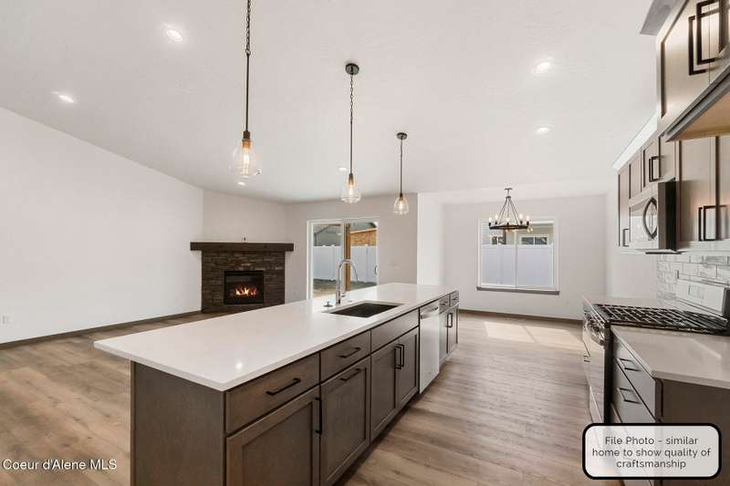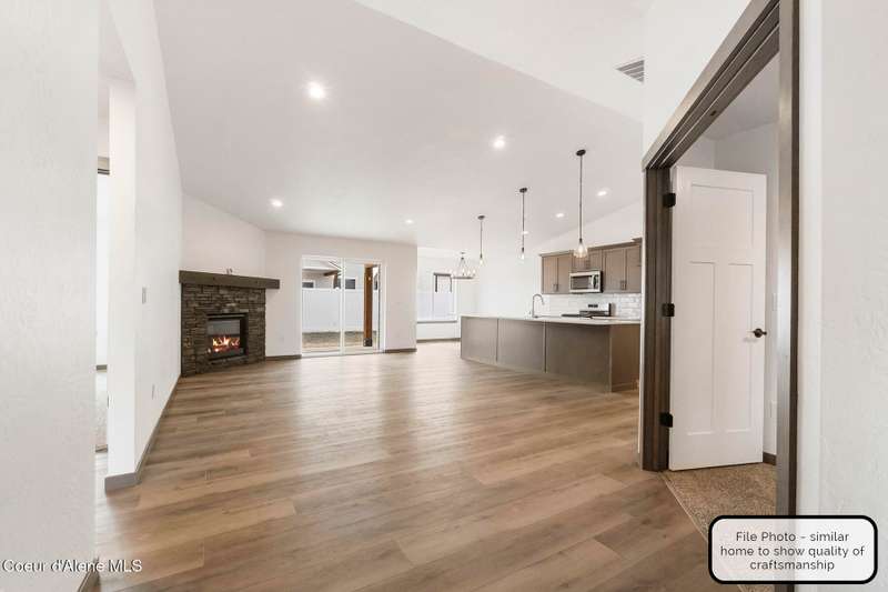 Under construction. Gas fireplace, 3 car garage, quartz countertops throughout, covered front and rear patio, vaulted ceilings, 95% gas furnace, Nest thermostat, tankless gas water heater, gas to rear patio, gas range, LVP flooring every where except bedrooms and closets, garage door opener, garage man door and front yard landscaping and sprinkler system. Additional lots and floor plans available!