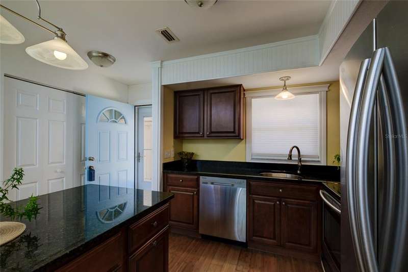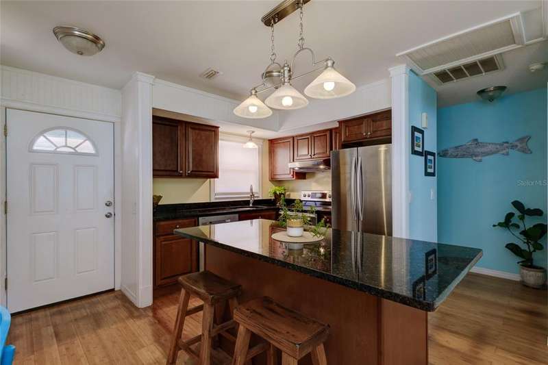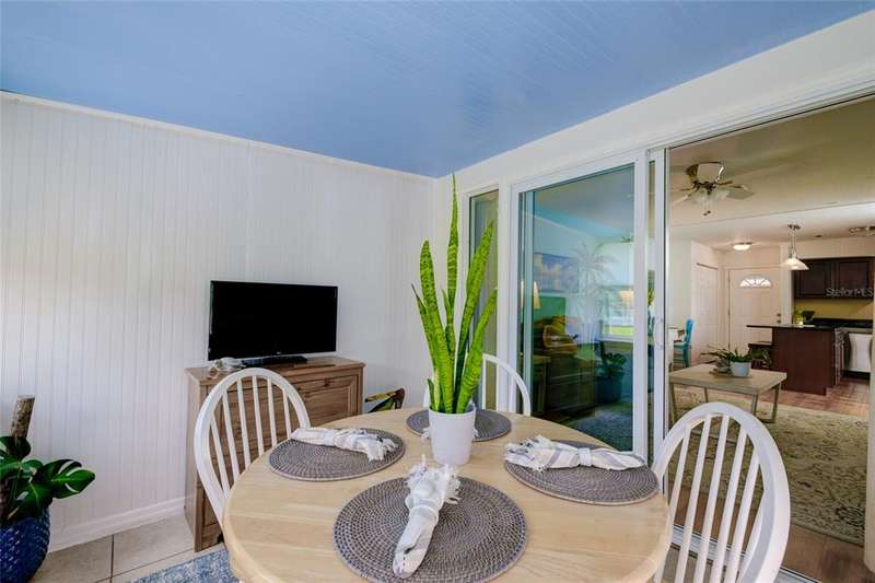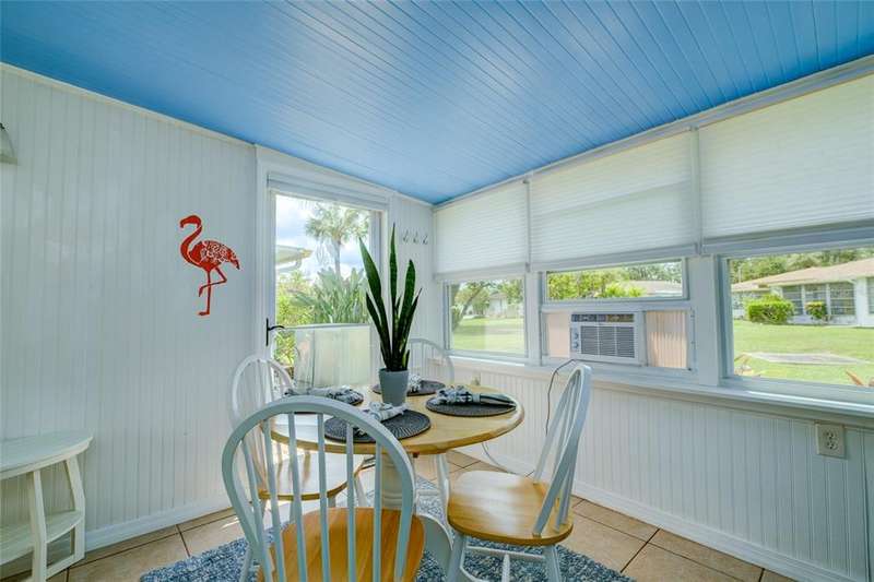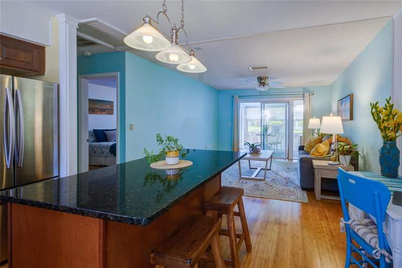 Welcome to this beautifully updated, fully furnished, move in ready, maintenance-free villa offering a brand-new roof and a newer AC system.Enjoy an open floor plan that combines a spacious kitchen and living room, perfect for entertaining. The kitchen features a large island with seating, cherry wood cabinets with soft-close mechanisms, granite countertops, and stainless steel appliances, including a double convection oven. The living room opens to an enclosed, under air, Florida room that's great for dining and accommodating guests, with convenient access to your back patio. The owner's suite offers a large walk-in closet and plenty of storage throughout. The updated bathroom showcases a large walk-in shower with floor-to-ceiling tile. The community amenities include a heated pool and clubhouse with billiards, table tennis, a catering kitchen, and shuffleboard courts. This villa is conveniently located across from the clubhouse and pool, with amenities such as cable, internet, landscaping, pest control, roof maintenance, and exterior painting included. Please note, no pets are allowed except for certified service animals. This property is near shopping, restaurants, golf courses, and beautiful Gulf beaches!