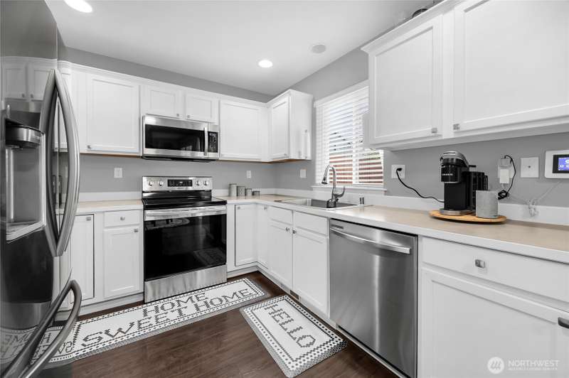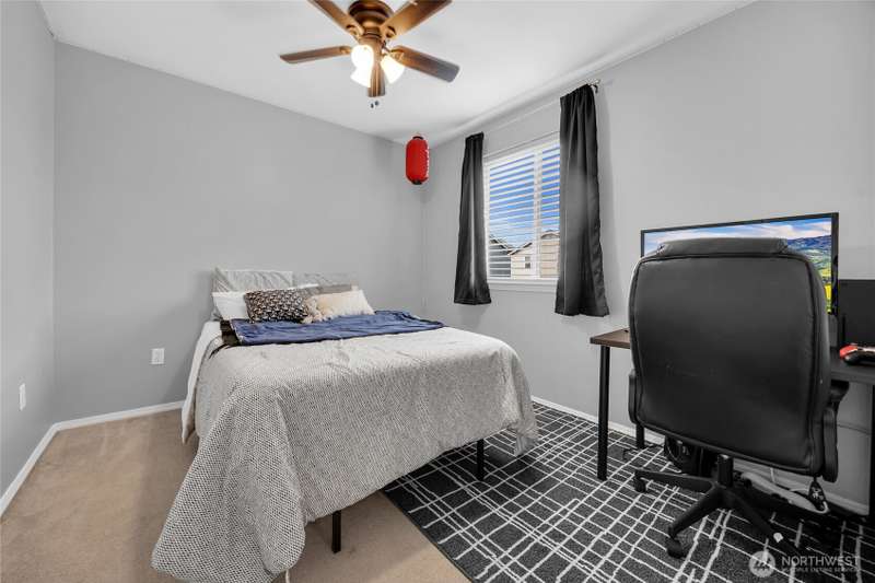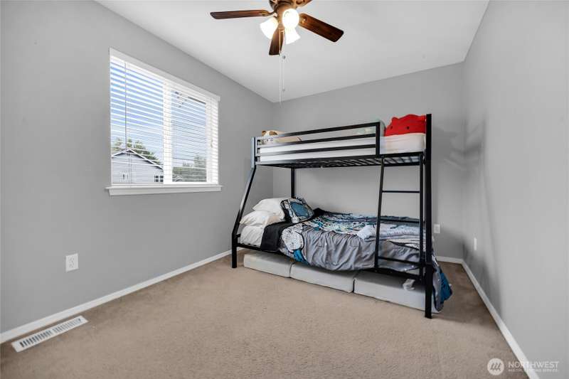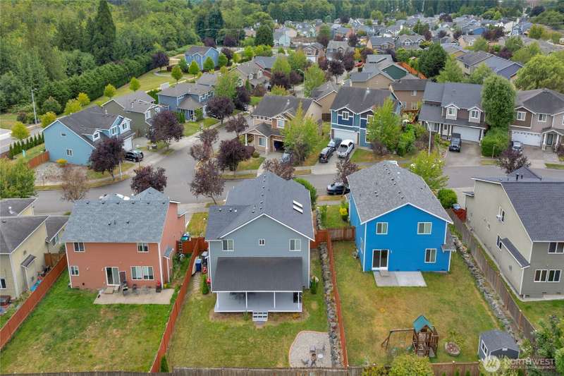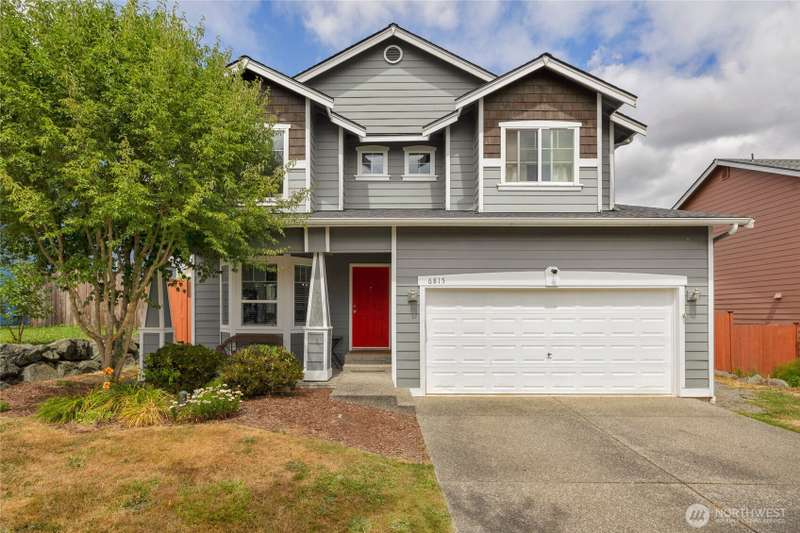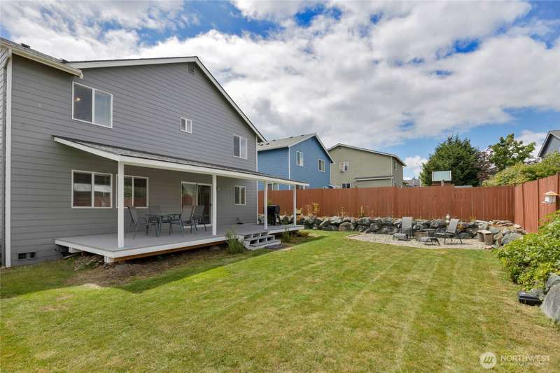 4.875% VA Loan! Cedarhome Elementary - Move-in Ready w/NEW ROOF! 3 beds, 2.5 baths, loft, covered deck & firepit! The main floor has 2 living areas, dining room & breakfast nook, 1/2 bath, laundry room, & walkout to covered deck for year round use. Newer paint throughout and beautiful chocolate flooring on the main. Kitchen has refinished cabinets, & stainless steel appliances stay. Living room has gas fireplace w/built-ins. Upstairs has a versatile loft, 2 nice sized bedrooms + a very spacious primary bedroom with vaulted ceilings, 5pc bath, and walk-in closet. Newer exterior paint, mature low-maintenance landscaping w/sprinkler system. Enjoy the community playground, swings, basketball court & picnic area. Walking distance to schools!