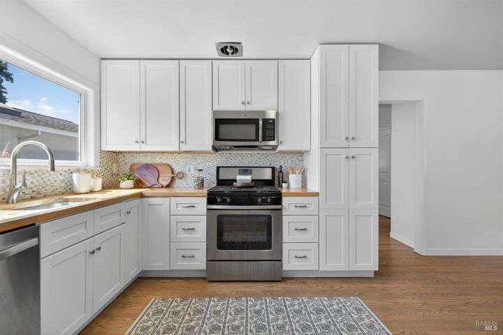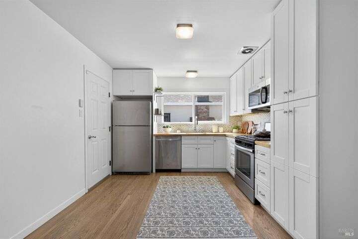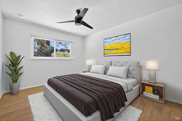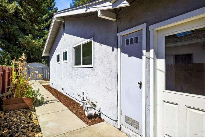 Nestled in Napa's desirable Bel Aire community, this charming 3-bedroom, 2-bath single-level home offers the perfect blend of comfort, convenience, and charm. Tucked away on a peaceful, friendly street, it welcomes you with a freshly painted interior, refinished original hardwood floors and a light-filled layout designed for easy everyday living. The assumable solar power purchase contract allows the new homeowner to take advantage of its energy efficient benefits. Step outside and enjoy the low-maintenance, drought-tolerant landscaping in both the front and back yards. The spacious, fully fenced backyard is a private retreat, complete with raised planter beds, fruit trees, and a storage shed ideal for gardening, entertaining, or simply relaxing while kids and pets play. Just a short stroll from shopping, dining, and everyday conveniences, this home offers a lifestyle that's as practical as it is welcoming. Whether you're searching for your first home, investment property or downsizing, this Bel Aire gem checks all the boxes.