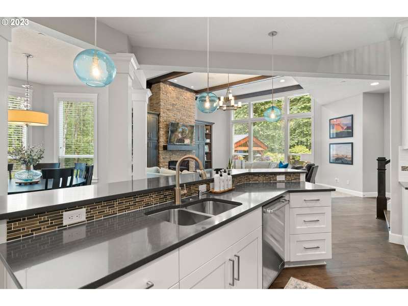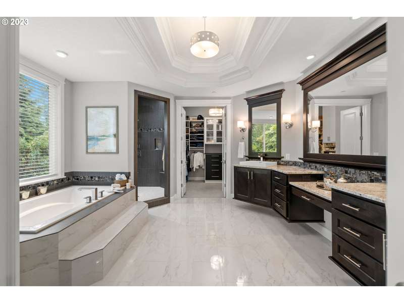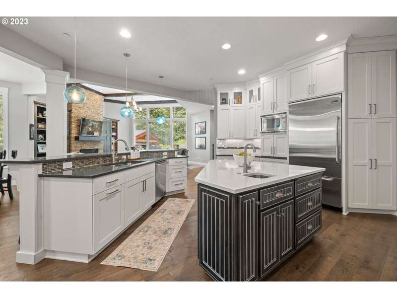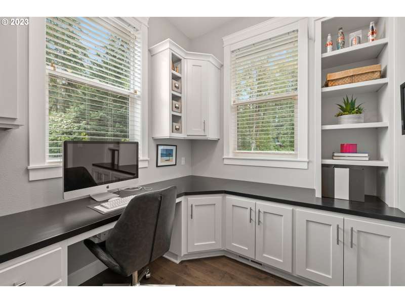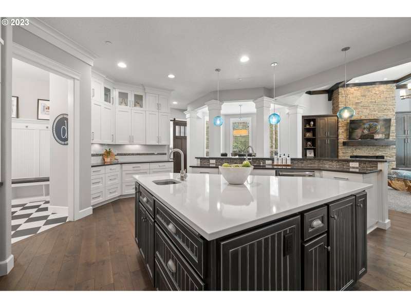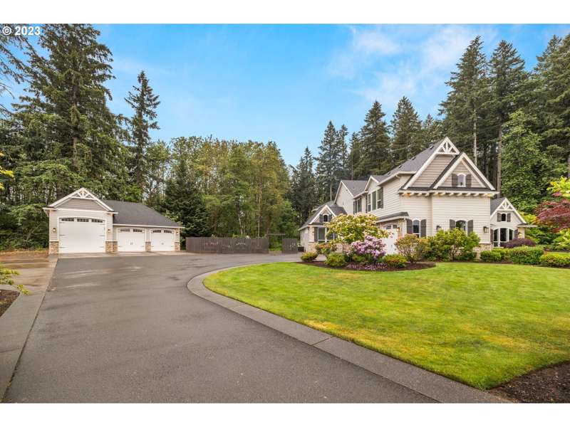 Close-in acreage on over 1 1/2 acres. With 5 bedrooms, 4 full baths and 2 half baths, there is ample space for family and guests. The home spans 5,780 Square feet and features a thoughtfully designed layout. No HOA or CCRs. The heart of the home which creates many memories is the gourmet kitchen, which is perfect for cooking enthusiasts. It boasts an oversized island with a prep sink, allowing for convenient meal preparation. The kitchen also includes a six-burner industrial range with a double oven and pot filler. A huge walk-in pantry provides plenty of storage space. The main level of the house features two offices, providing at-home work environments. Additionally, there is a designated exercise room allowing you to stay fit within the comfort of your own home. Convenience is key in this residence, with a mudroom including added storage. The laundry room is equipped with built-in features, a sewing nook and a sink area, making laundry tasks more efficient. The primary bedroom, situated on the main level, offers a retreat-like experience. It features a sitting area, allowing you to relax and unwind. The en-suite bathroom is a luxurious haven with double shower heads, providing a spa-like experience. The custom walk-in closet is a dream come true. The backyard of this home is truly an oasis. A covered patio and eating area provide the perfect setting for outdoor gatherings. You can relax and rejuvenate in the hot tub area or cozy up by the custom outdoor fireplace. For those who enjoy cooking outdoors, there is even an outdoor pizza oven. The yard is adorned with mature landscaping, and a water feature cascading into a pond. Also features a seasonal creek. Lastly, this property consists of a three-car attached garage and a three-car detached garage/shop with added RV parking. Shop is also big enough for your boat and added toys. Overall, this home offers a blend of luxury, functionality and outdoor beauty, providing an exceptional living experience.