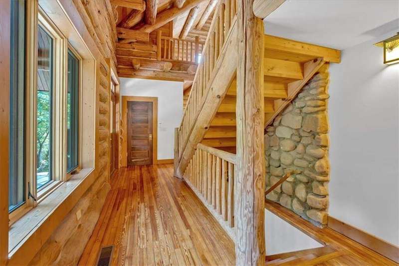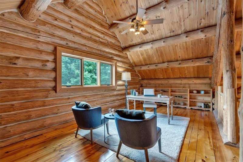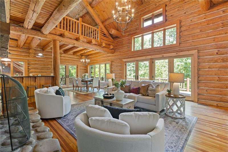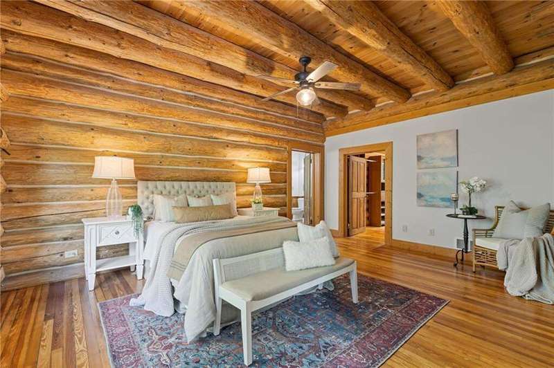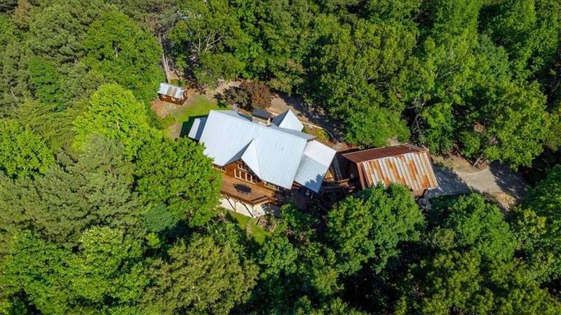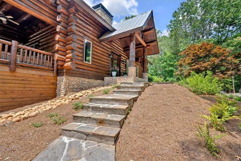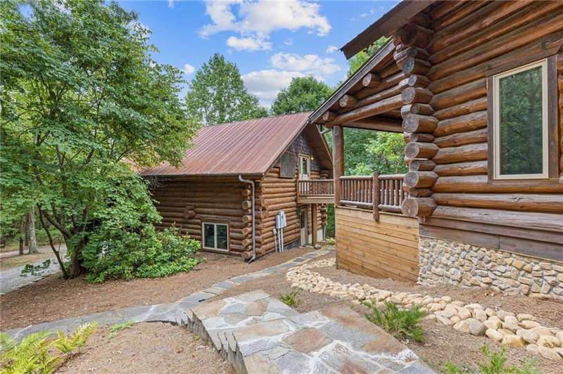 Discover your dream homestead, second home, or income-generating retreat on over 5 acres of tranquil, nature-embraced land-where every day feels like a vacation. This custom Maple Island Log home masterfully blends rustic allure with modern luxury, offering endless possibilities for homesteading, multigenerational living, or a lucrative short-term rental venture. The main residence features 4 spacious bedrooms and 3.5 bathrooms, designed for comfort and connection. The heart of the home is its inviting living area, showcasing vaulted open-truss ceilings and a striking river rock masonry fireplace, perfect for cozy gatherings. The gourmet kitchen, equipped with high-end appliances, custom cabinetry, and honed granite countertops, makes hosting a breeze. Newly renovated primary bath! Historic first-growth pine floors, salvaged from Canton's old sheriff's office, add rich character and timeless charm to every step. A standout feature is the expansive garage apartment-an ideal guest suite, in-law retreat, or income-producing Airbnb. Complete with a full kitchen, living area, bedroom, bathroom, and private entrances, it's a versatile space ready to generate revenue or welcome loved ones. The finished basement, with 2 bedrooms, a full bathroom, a wet bar, and a wood-burning stove, offers a flexible space for a game room, home theater, or fitness area, perfect for family fun or homesteading projects. Step outside to the wraparound deck and patio, where breathtaking views and serene silence create an unmatched oasis for relaxation or entertaining. A two-bay barn provides ample storage for boats, ATVs, or a workshop, enhancing the property's homesteading potential. Despite its peaceful seclusion, you're just minutes from Canton and Cartersville's shops, restaurants, and attractions, with Big Door Vineyards less than a mile away and Wilderness Creek and Sweetwater Creek Campgrounds nearby. This one-of-a-kind property is a rare opportunity to own a versatile retreat-perfect for sustainable living, a family escape, or a profitable investment. Embrace the tranquility, history, and endless potential of this extraordinary home.