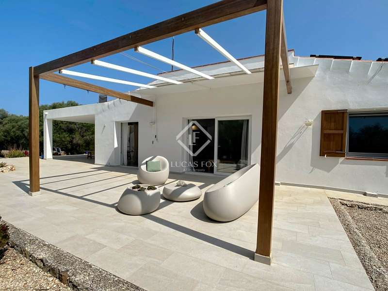 This beautiful country house is located in the southwest area of the island of Menorca. It offers a completely renovated house of 200 m² and a guest house of 83 m². In the main house, the ground floor has 4 double bedrooms, 3 bathrooms (one private in one of the bedrooms), the kitchen and a living room with access to a porch-terrace. The upper floor has a bedroom with a private bathroom, walk-in closet and access to a terrace with views of the open countryside and the sea. The guest house has a bedroom and a bathroom. Outside we find a nice garden with several terraces, space for al fresco dining and an attractive pool. The house has spectacular designer finishes and underfloor heating for maximum comfort. Electricity and water are completely legalized. A very cosy country house, perfect to enjoy a wonderful rural environment.