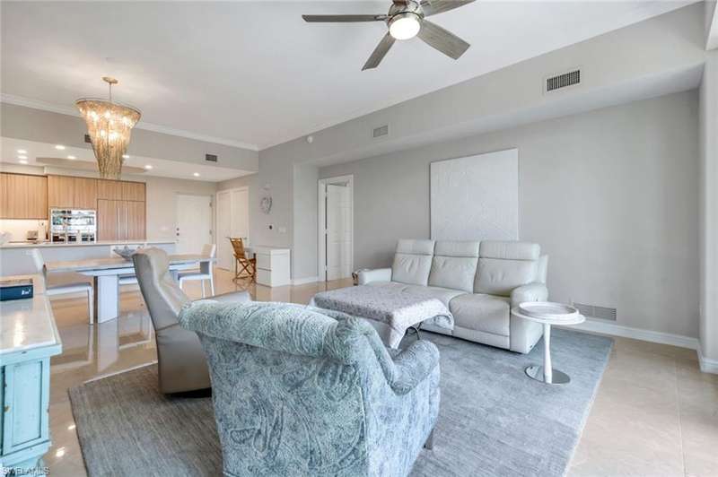 Ventanas at Tiburon! Experience the perfect combination of modern luxury living within an amenity rich resort style community! This completely remastered fourth floor 2 Bedroom/2 Bath home is truly a showcase property and is being offered move in ready with contemporary style furnishings and gorgeous upgrades throughout. Impressive features include impact windows and doors, beautiful flooring, double oven modern kitchen, open floor plan, full laundry room, spa-like bathrooms, large screened lanai with lush preserve views, secure gated entry, and convenient under building parking. Ventanas has the use of two inviting pools with spas, an outdoor grilling area, and is located just a short walk or bike ride to The Ritz-Carlton Golf Resort and The Tiburon Clubhouse.