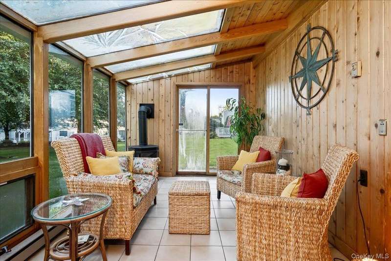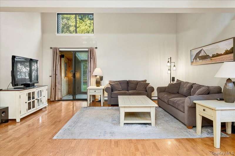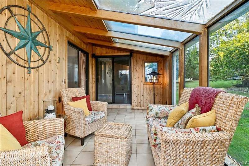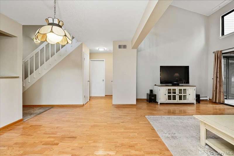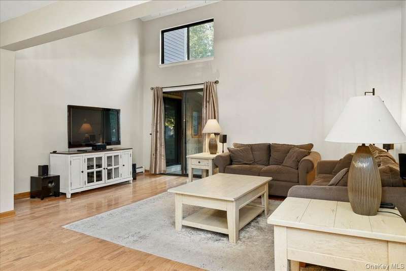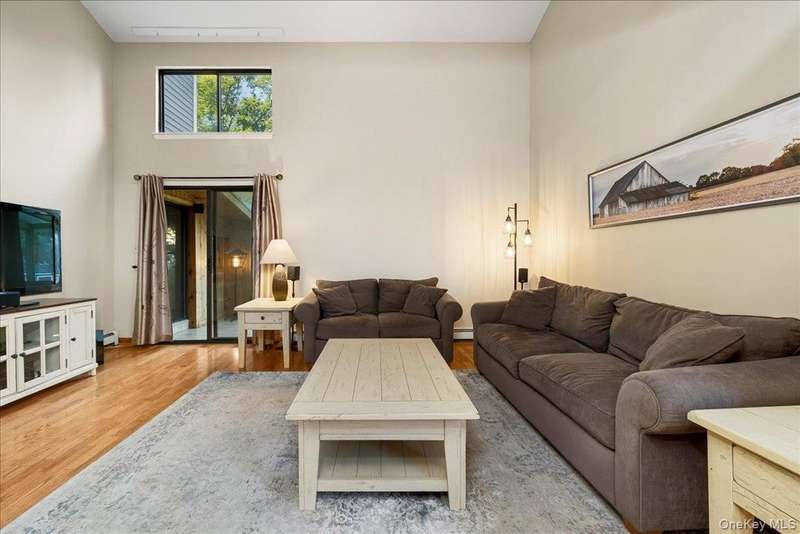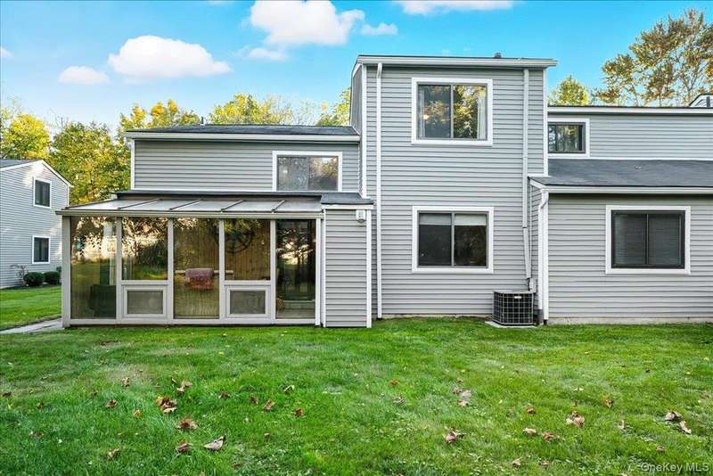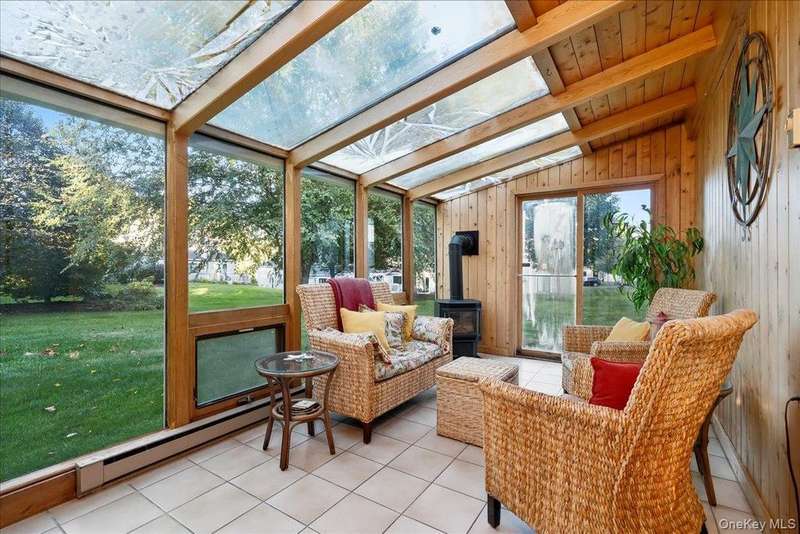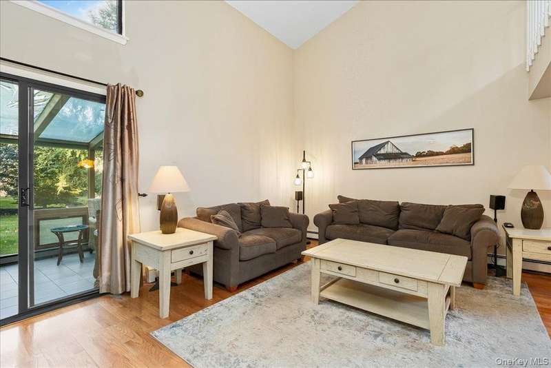 Welcome to this stunning end-unit townhome in the highly desirable Paddocks of the Village of Goshen, NY. Offering over 1,450 square feet of thoughtfully designed living space, this 2-bedroom, 2-bathroom home blends comfort, convenience, and unique features you won't find anywhere else in the community. The main level is designed for easy living, featuring a bedroom and full bathroom complete with washer and dryer. The kitchen is beautifully appointed with stainless steel appliances and custom cabinetry, opening to a bright and airy living room with soaring cathedral ceilings and oversized windows that flood the space with natural light and comes complete with a surround sound system. One of the standout highlights is the exclusive three-season/sun room?the only one in the Paddocks?complete with a cozy gas fireplace, large windows, and sliding doors that lead to your private patio, it's the perfect space to relax or entertain. This area also comes partially furnished for added convenience. Upstairs, you'll find a spacious loft ideal for a home office or den, along with a second bedroom and another full bath featuring a newly reglazed tub. Additional amenities include a heated one-car garage and driveway parking for two more vehicles. Located just steps from the Heritage Trail, the Village farmers market, local shops, and restaurants, this home also offers easy access to major highways for a stress-free commute. Enjoy the worry-free lifestyle of an HOA community where the grounds are beautifully maintained year-round. Don't miss this rare opportunity to rent a one-of-a-kind home in the heart of Goshen.