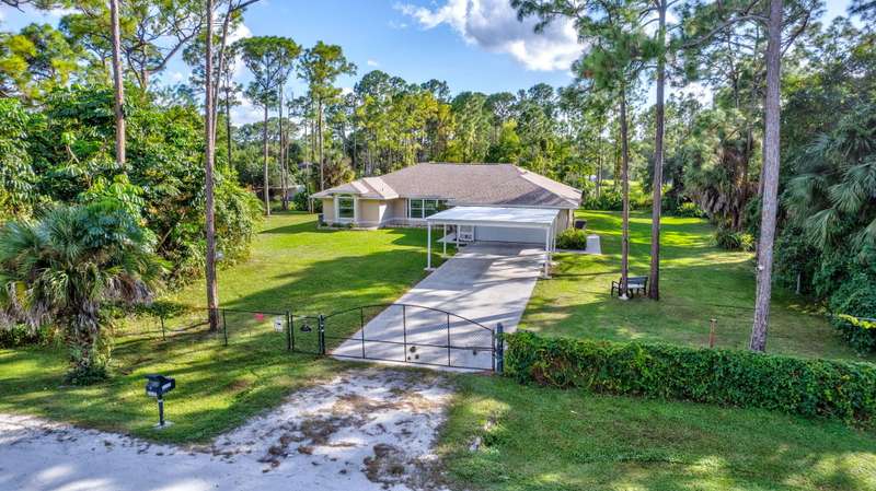 2.58 TOTAL ACRES- AMAZING FIND & ROOM TO ROAM on this rare find on canal. This split floor plan CBS home features a NEWER ROOF (2020), IMPACT WINDOWS, NEW AC (2024), whole home generator w/owned propane tank, exterior painted 2024 and fully fenced with a remote front entry gate. Vaulted ceiling living areas, an inground pool with a salt system, 10 foot Gazebo, a large fire pit, irrigation from the canal w/new pump, storage shed, 2 kennels w/ac (12x20 and 12x10) for a total of 6 runs in the kennels and enclosed outside area for each run. This is a ''package deal'' with the primary residence and adjacent lot combined. Home available separate if desired for $610K, MLS RX-10090138. Vacant lots are selling for a minimum of $250K and up. (See supplement/addenda for more)