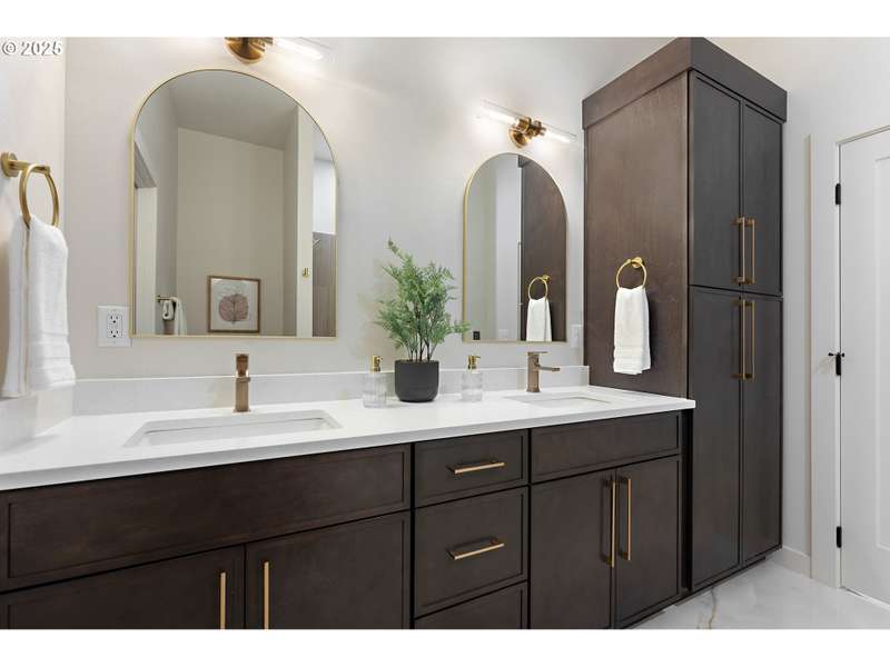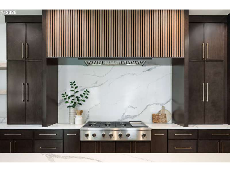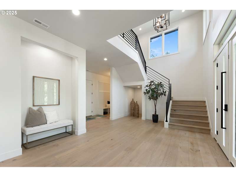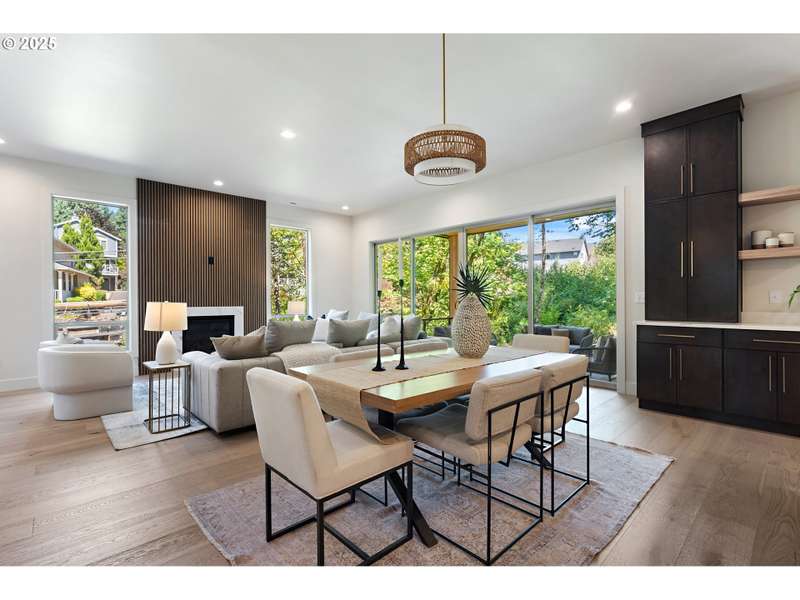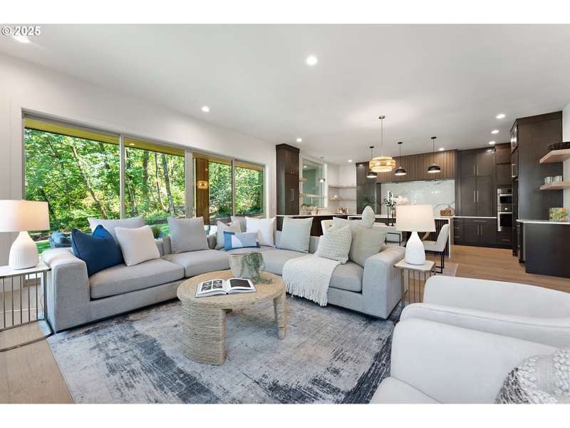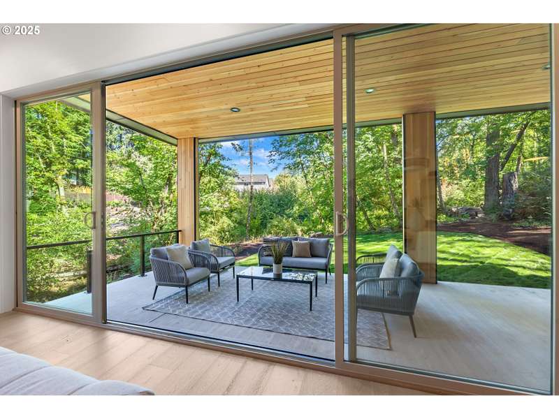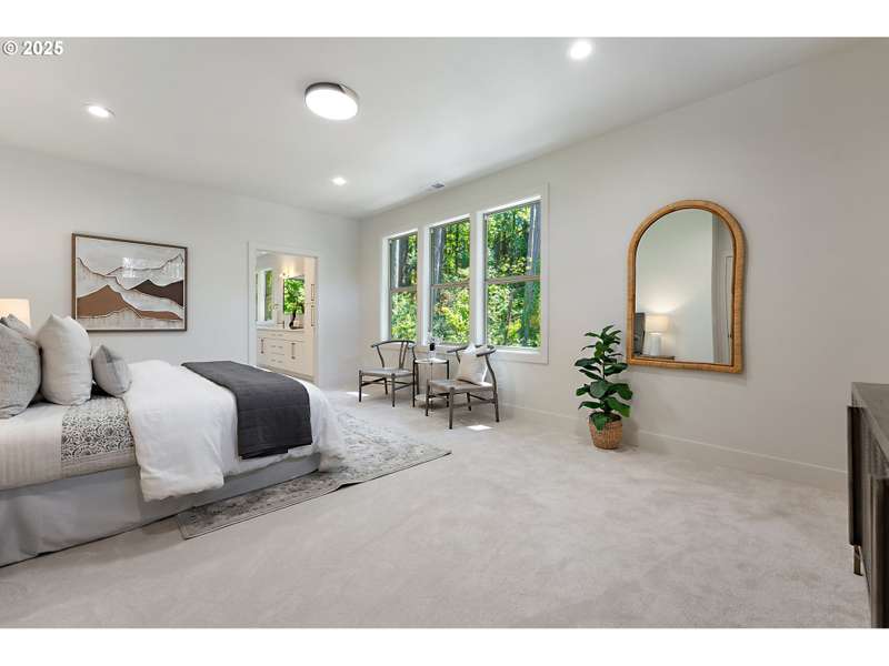 New Price! OPEN HOUSE, Sunday, 11/16, 12:00-2:00p. Don’t miss this beautifully crafted Modern-style home offering a rare blend of peace and tranquility. Sitting on a 1/2 acre and spanning 4,024 square feet, this thoughtfully designed residence features 5 bedrooms and 4 full bathrooms – including a second Primary Suite on the main level, ideal for guests or extended family. This suite boasts its own laundry hookup, heated bathroom floors, and a private patio for added comfort and privacy. Step inside and experience the spacious elegance, highlighted by soaring 10-foot ceilings and expansive windows that seamlessly connect the indoors with the natural beauty outside. The kitchen is a chef's dream come true, equipped with stainless steel Bosch appliances-including a 7-burner gas stove and solid quartz surfaces throughout. A generous island provides the perfect space for meal prep or entertaining. The upstairs Primary Suite offers a serene retreat with views of the neighboring woods where deer often wander. The luxurious bathroom featured heated floors, a double quartz vanity, a large three-head shower, and soaking tub for ultimate relaxation. The upper level also includes a versatile bonus or gaming room, along with two additional spacious bedrooms. Just off the kitchen and living room is a 410 square foot covered patio that extends into the lush backyard, the perfect spot to savor your morning coffee or unwind in the evening to the gentle sounds of the nearby creek and surrounding landscape. Convenient to major roadways, employers, shopping and restaurants, this home is ready for its next owner. Will it be you?