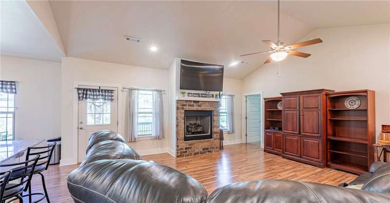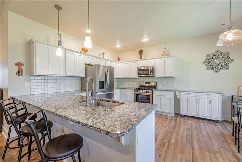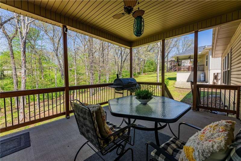 $369,000.00!! $5000 offered toward closing costs!!! Imagine yourself living here. Practically a blank canvas for you to make your very own. Brand new in 2019. Come on inside to discover an inviting open floor plan that is highlighted by a spacious living room boasting a vaulted ceiling. The well-appointed kitchen features sleek stainless appliances, including desirable propane range and oven-a dream for any home chef. Your new home flows beautifully with engineered floors and carpet in bedrooms. Enjoy the privacy of a split floor plan, featuring two full-size bathrooms one with a soaking tub. Extend your living outdoors to the expansive covered deck, an ideal spot for relaxation or entertaining while overlooking the large private backyard and tranquil wooded area. Make this your home today! Benefit from public sewer, Bentonville school district, and easy access to the highway for effortless commuting.