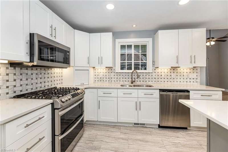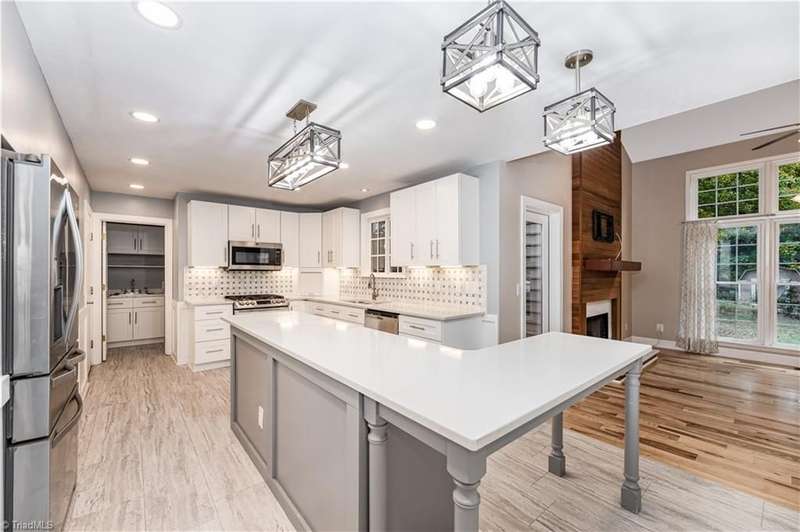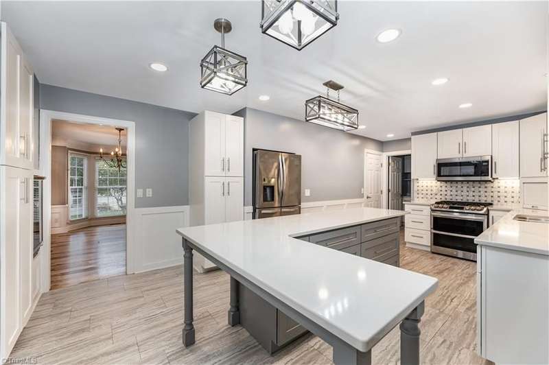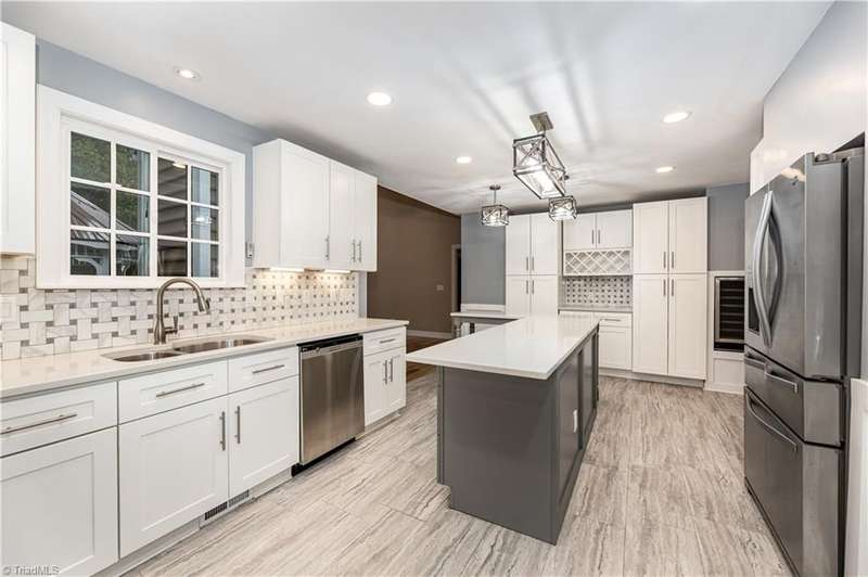 The renovated home has 4 bedrooms and 2.5 bathrooms with a loft and located in Blairwood Estates. The primary bedroom, with on-suite bathroom, is located on the main level. The recently updated kitchen has commercial grade flooring, a large island, recessed lighting, gas double oven with convection, newer dishwasher, appliance garage with receptacles, and a built-in wine fridge. The laundry room with sink is on the main level off from the kitchen. There is an oversize garage adjacent to the two car garage is perfect for parking your vehicle and can be used as a shop. The oversize garage is cooled via a wall a/c unit. Enjoy the evenings on the gazebo and back deck. The home has hickory hardwood floors installed in some areas 2017 and they were just refinished. In 2023 replacement windows, new front door, and a kitchen remodel were completed. The roof including gazebo & shed, added storage room, replaced the some exterior trim, new gutters, exterior paint were all updated in 2025.