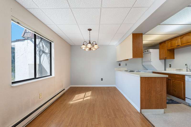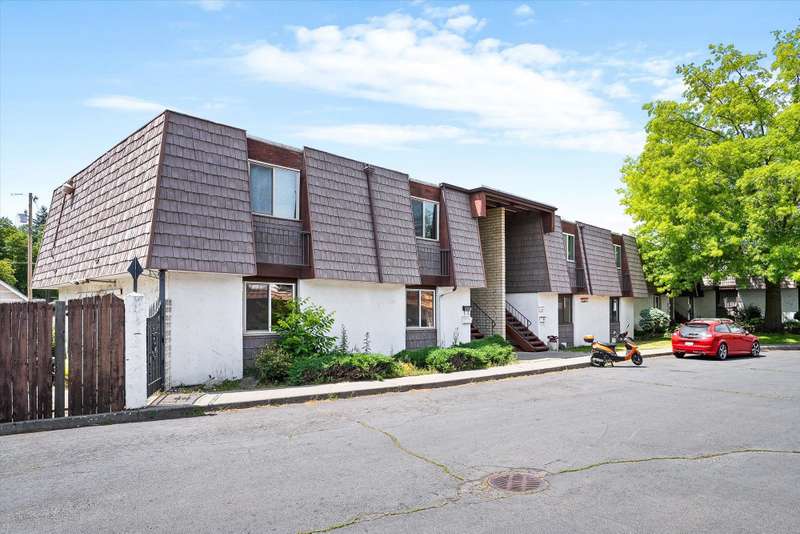 Bright open floor plan in this 2-bedroom, 1 bath first floor condo. Large primary bedroom with direct access to the main updated bathroom with gleaming subway tile. Nice dining space and ample cabinets in kitchen. All appliances stay including stacked washer and dryer, dishwasher, refrigerator, microwave, & range. Slider to fenced patio area. Easy access to Centennial Trail, Spokane River views, West Central Community Center, Cannon Park and Pool. Minutes to Kendall Yards restaurants, sports arenas, entertainment, downtown Spokane, and I90. One carport space and ample extra off-street parking. HOA fee of $175 monthly covers water, sewer, garbage, property maintenance, and management. Sunflower Bank offering 1% lender credit with new VA or Conv loans! Pick up a flyer for more information at showing. ASSUMABLE LOAN balance of approximately $183k at 2.75% makes this a very affordable home! New roof installed June 2025! Motivated seller, move in ready for new owner.