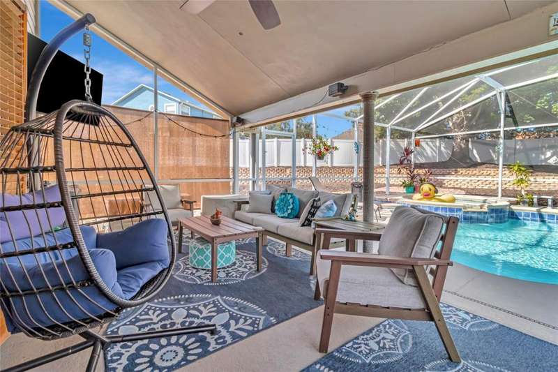Welcome Home to the Florida Lifestyle You've Been Dreaming Of! Tucked away in the highly sought-after Lake Crescent Hills community, this custom-built two-story pool home perfectly captures the essence of Florida living-where sunny days, sparkling lakes, and relaxed comfort come together in one stunning property. With private access to the pristine Clermont Chain of Lakes, you'll enjoy boating, fishing, or simply soaking in peaceful lake views right within your neighborhood.Step inside and discover a spacious and charming 4-bedroom, 2.5-bath home designed for both relaxation and connection. The primary suite on the main floor offers quiet privacy, featuring a large walk-in closet and a spa-inspired bathroom complete with a garden tub and separate shower. On the first floor, you'll also find a generous 12 x 27 bonus room-perfect for a second living area, game room, or home theater-as well as a spacious laundry room with plenty of storage and convenience. Upstairs, you'll find three additional bedrooms with beautiful laminate flooring, ideal for family or guests.This home has been lovingly maintained with major updates, including a new roof (2023) with transferrable warranty, two A/C units for zoned comfort, and a recently cleaned septic system (2025) with risers installed. The exterior features durable Hardie Board siding, offering timeless curb appeal and lasting quality. The oversized two-car garage easily fits both vehicles and still provides room for a workbench and tools-perfect for hobbyists or DIY enthusiasts.Enjoy mornings on the inviting front porch with coffee in hand, or spend afternoons in your resort-style saltwater pool and spa-complete with a pool heater, resurfaced finish, and a 6-foot vinyl privacy fence that transforms your backyard into a private oasis. The screened lanai truly feels like a luxury resort retreat, offering space for outdoor dining, lounging, and entertaining-all while surrounded by tropical scenery and the gentle sounds of Florida's endless summer. Beyond the lanai, the backyard provides plenty of room for a fire pit, grilling area, or an additional sitting space, making it the ultimate setting for gatherings, sunsets, and starlit evenings.Residents of Lake Crescent Hills enjoy exclusive amenities including private boat ramp and dock access to the Clermont Chain of Lakes, a playground, picnic area, fishing pier, and basketball court-everything you need to live, relax, and play.Perfectly situated, this home is just 40 minutes from Disney and other world-class theme parks, and only 15 minutes from Downtown Clermont's charming restaurants, boutiques, and lakeside shopping.Every detail of this home has been designed for comfort, beauty, and the joy of lake living. Come experience 10414 Mesa Lane-where every day feels like a getaway.
