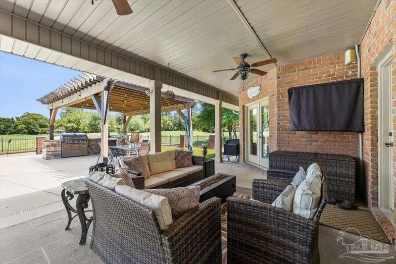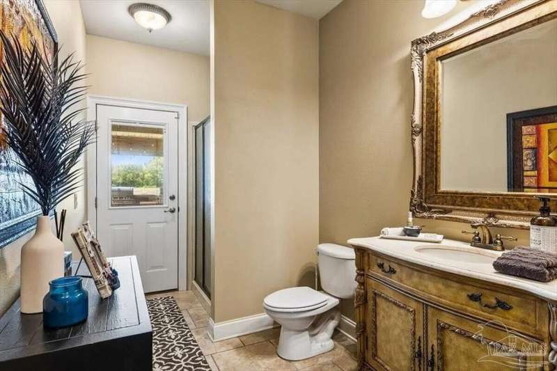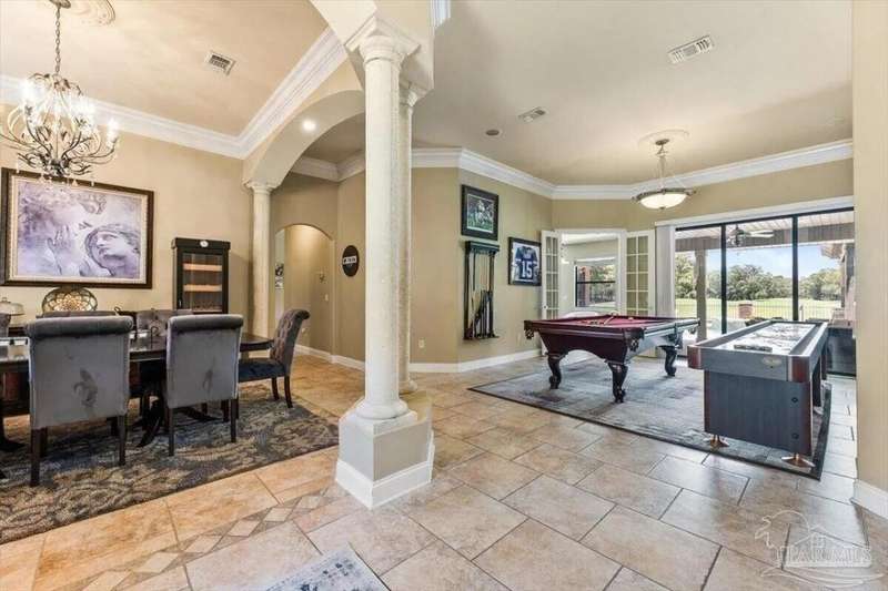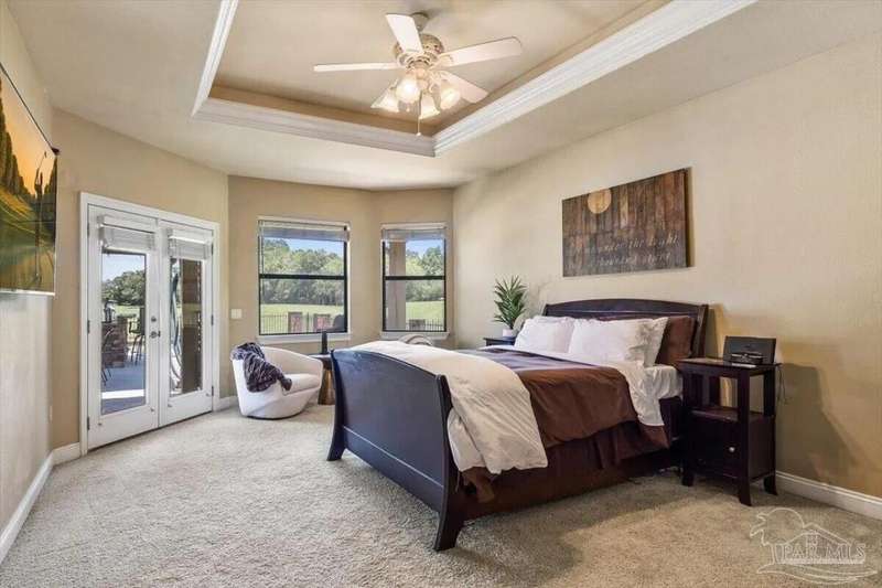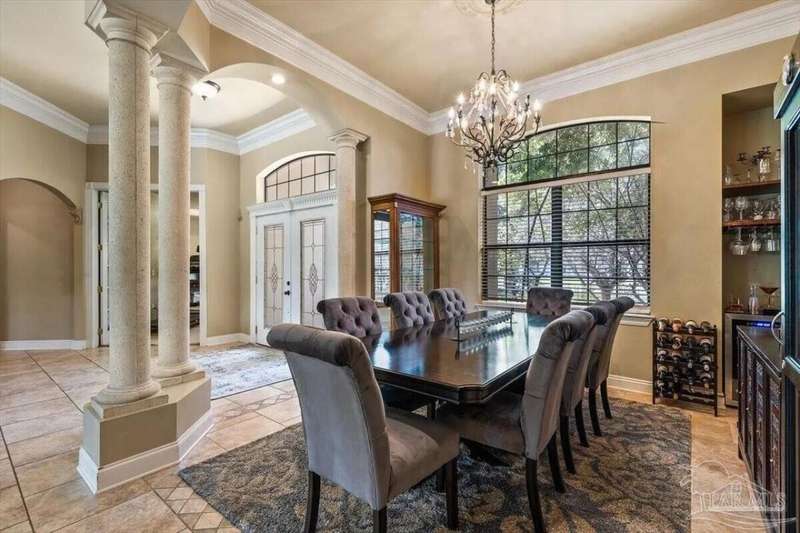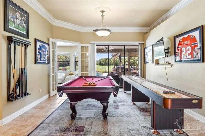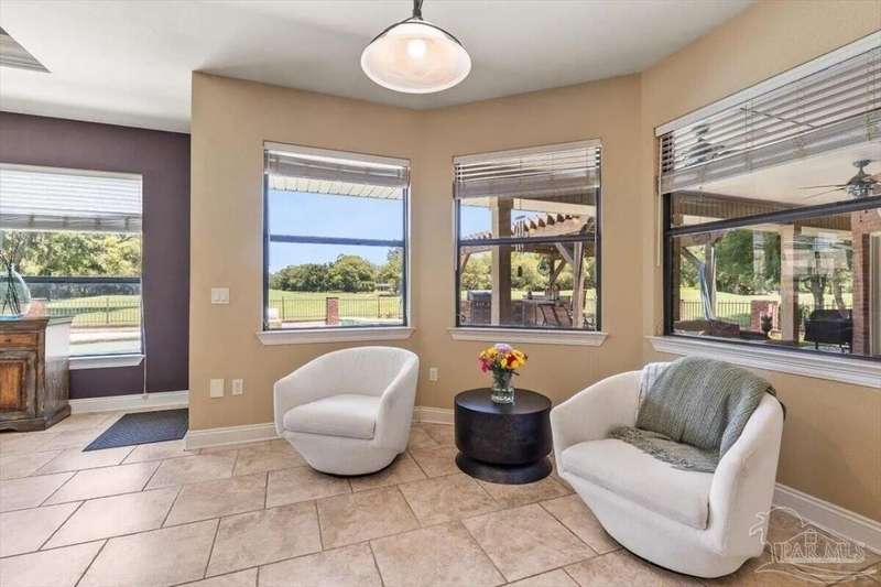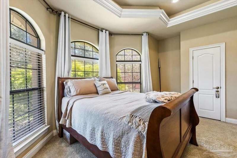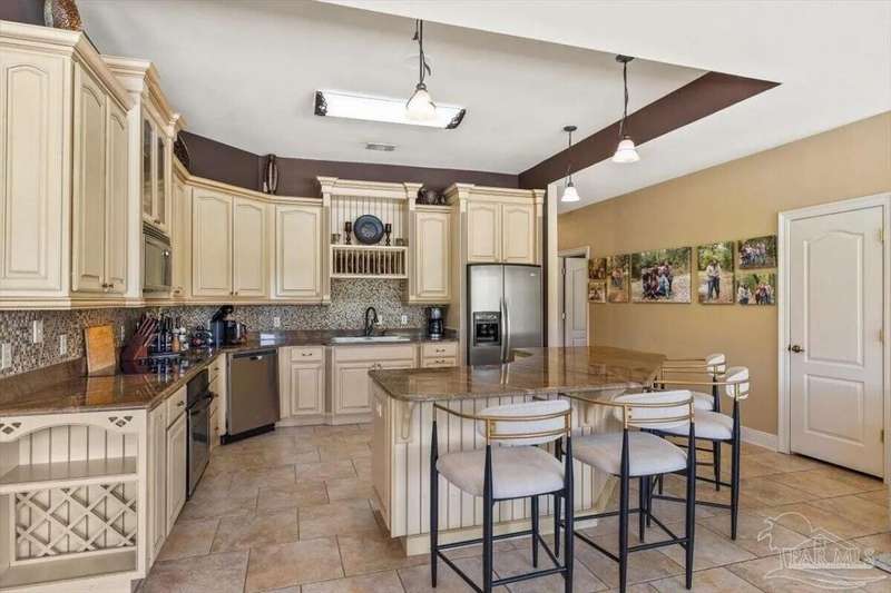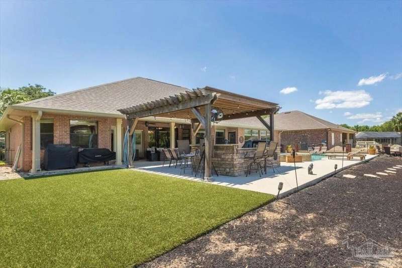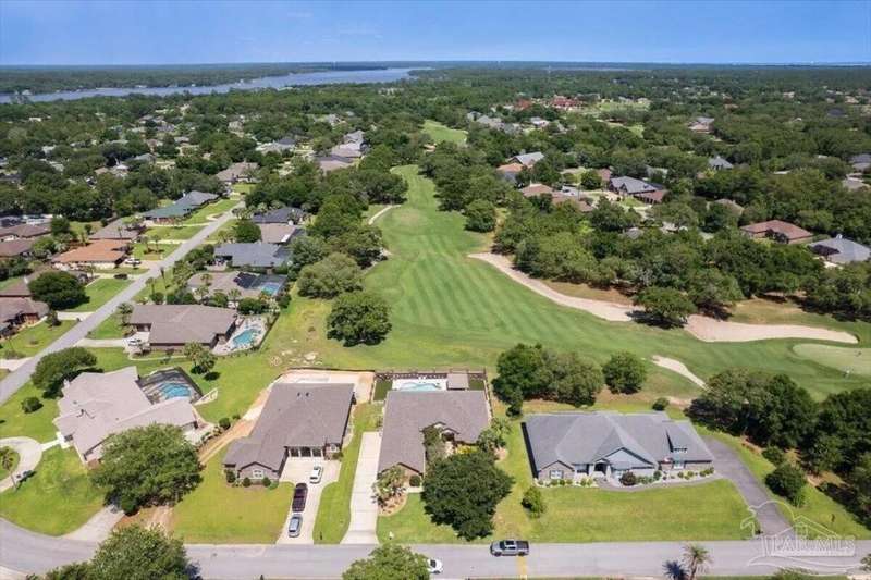 Welcome to 2858 PGA Boulevard -- an immaculate 4-bedroom, 3-bath home perfectly positioned on the 11th fairway of the Hidden Creek Golf Course in the desirable Holley by the Sea community. This 3,096 sq ft custom-built brick residence showcases elegant architectural details, a resort-style pool, and exceptional indoor-outdoor living designed for comfort and entertaining.Step inside the grand double-door entry to soaring ceilings, decorative columns, crown molding, and an abundance of natural light. The open, split-bedroom floor plan features formal living and dining rooms, a spacious family room overlooking the golf course, and a private office or flex space with French doors.The chef's kitchen is the heart of the home, complete with granite countertops, stainless-steel appliances, a large center island, breakfast bar, and custom cabinetry. The adjoining breakfast nook and leisure room open to the screened lanai for effortless entertaining. The luxurious primary suite offers serene golf-course views, direct pool access, a spa-inspired bathroom with dual vanities, a jetted garden tub, a tiled walk-in shower, and a large walk-in closet. Three additional bedrooms and two full baths provide ample space for family or guests. Enjoy Florida living at its finest in the backyard oasis, complete with a sparkling in-ground pool, sun deck, outdoor kitchen, and panoramic fairway views. The beautifully landscaped .34-acre lot also includes an irrigation system, privacy fencing, and a side-entry 2-car garage. Residents of Hidden Creek enjoy exclusive access to the Holley by the Sea Recreation Center featuring tennis, pickleball, fitness facilities, multiple pools, a private beach house with boat launch, and year-round community events. Conveniently located near top-rated schools, shopping, and the white-sand beaches of Navarre Beach, this home delivers a rare combination of elegance, lifestyle, and location.