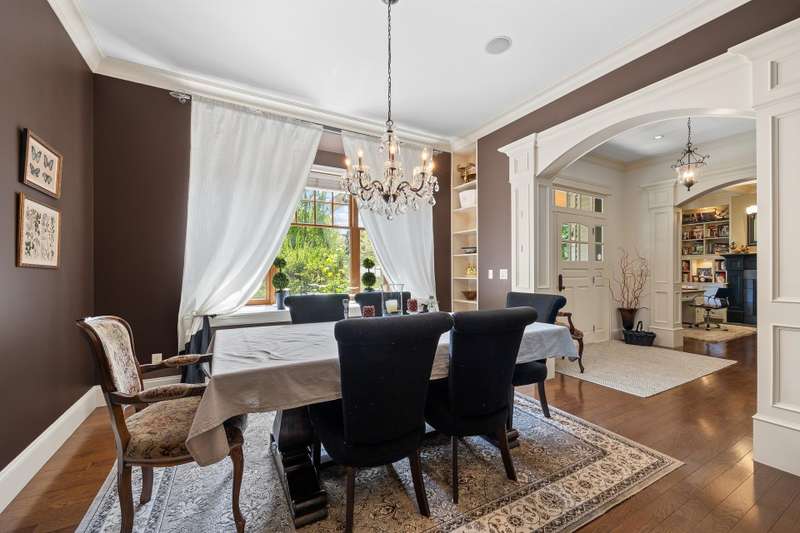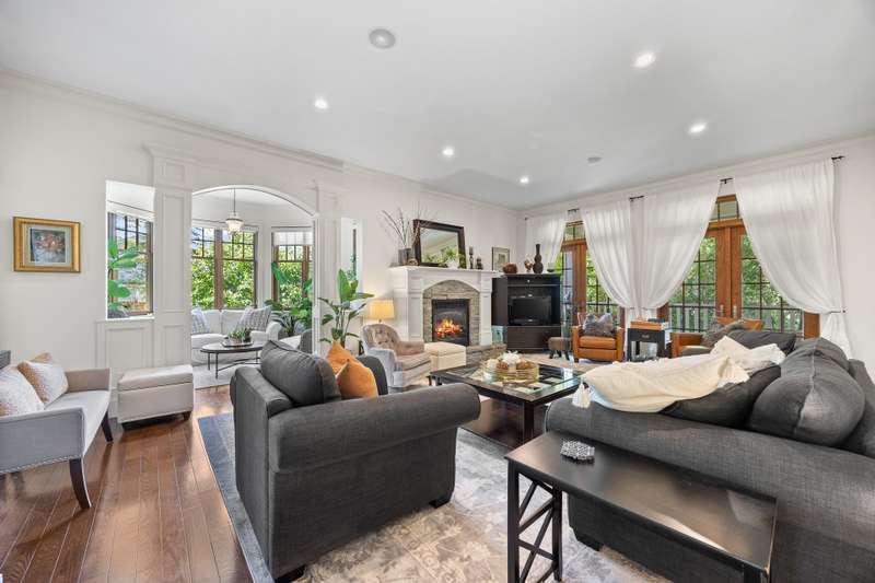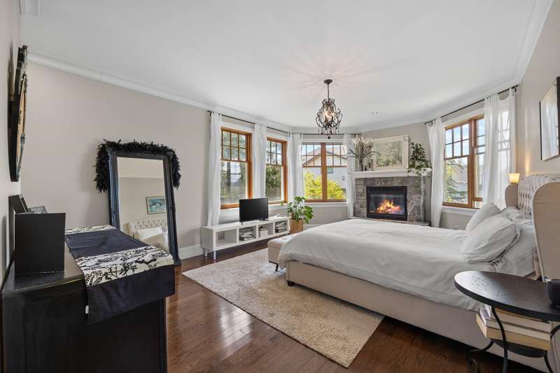 Timeless Shaughnessy-inspired estate residence situated on Grandview's most prestigious locations. Designed by renowned Loy Leyland, this 6,800sqft custom-built home exudes quality craftsmanship with traditional charm. Walking through the front porch, you’re greeted by cross-hall formal living and dining rooms, beautiful dream kitchen and a spacious family room. Seamless access to the outdoors through multiple sets of French doors and a private guest room tucked away on the main. 4 bedrooms above, including the charming primary suite with a private deck. Bonus loft floor above perfect for a games room or study area. Lower level complete with a spacious rec. room, bar, gym and guest bedroom. Situated on a full ACRE, this property offers North Shore Mountain views with ample privacy.