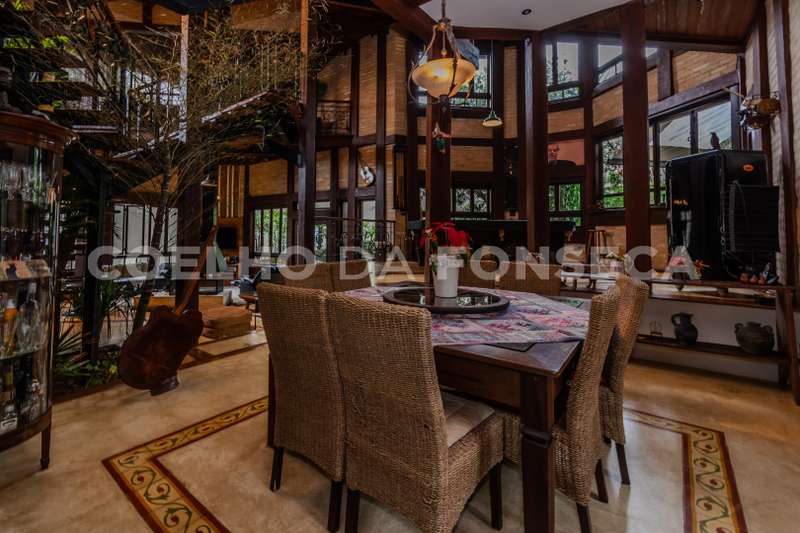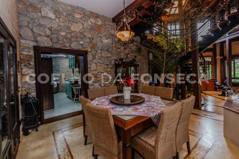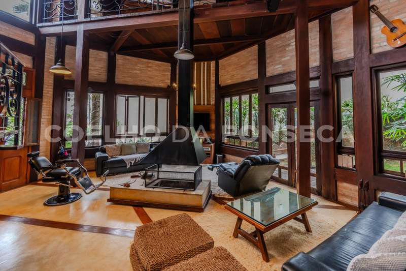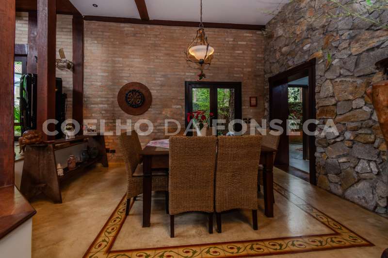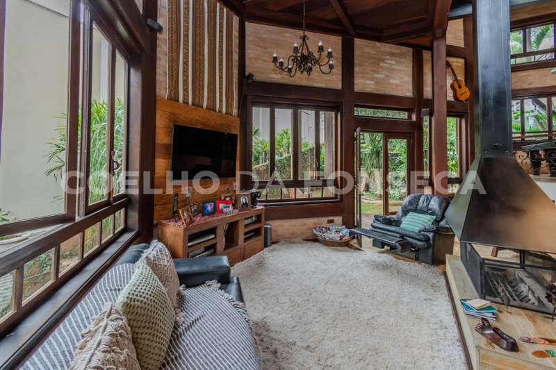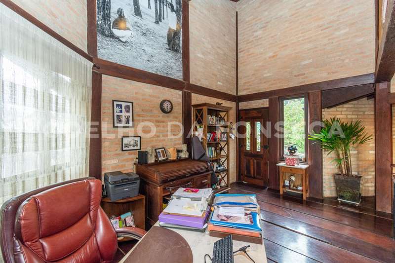 Casa aconchegante muito bem localizada, construção sólida em tijolo aparente, madeira de lei e vidro, com boa ventilação e luminosidade, em ótimo e seguro condominio, 3 dormitorios, sendo todos suites, living para vários ambientes com pé direito bem alto, escritório, área de lazer completa com ótima piscina aquecida, sauna, academia, edícula com balcão frigorifico, fogão e forno a lenha, forno de pizza a lenha, churrasqueira, quintal com muito espaço e arvores frutiferas, com mini lago, dependências de empregada (suíte). O Valor de Venda inclui toda a mobilia atual da residência, porteira fechada,