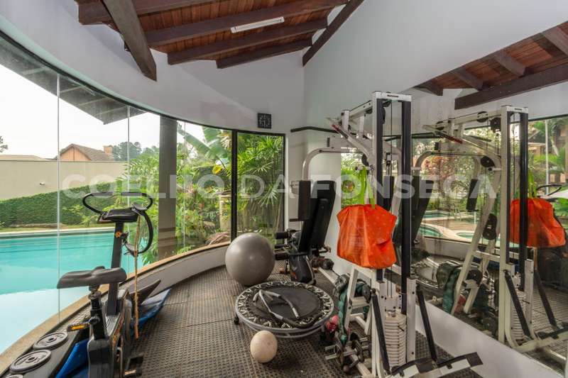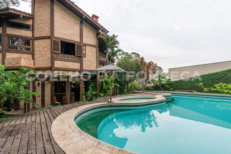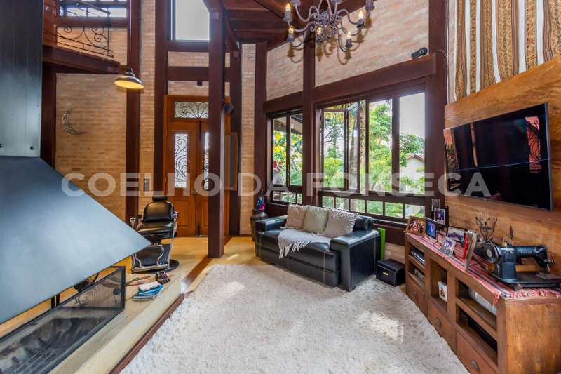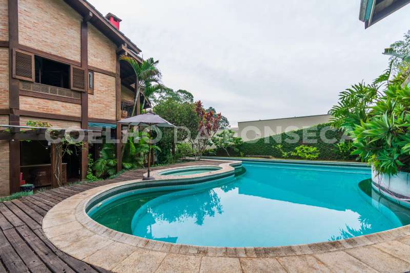 Casa em Condomínio no bairro Aldeia da Serra com 550m² área construída, 3 dormitório(s), 3 suíte(s), 8 vaga(s), 5 banheiro(s), piscina, escritório, mobiliado (a), ar condicionado, dep. de empregados, aquecedor solar, pé direito duplo.