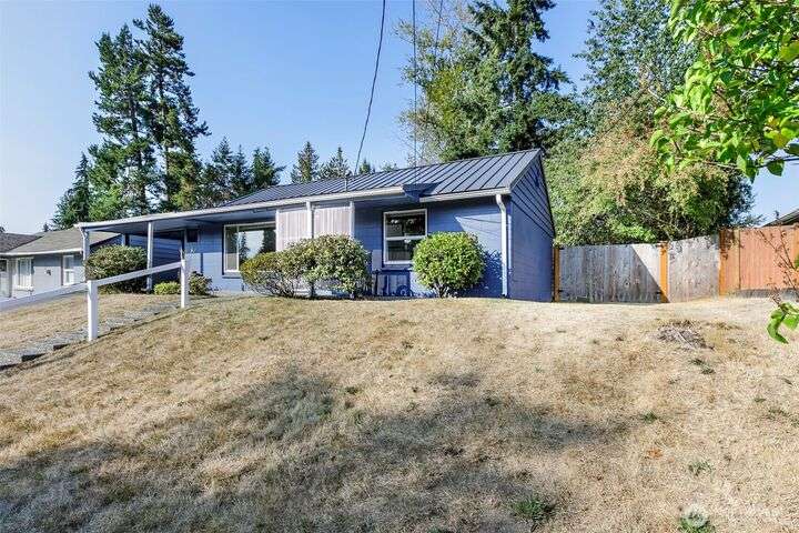 Unique opportunity in transforming community of Mountlake Terrace. Over 10K lot size and current home positioned to allow easy access to backyard. Overall level site and current zoning allows for build out of additional home(s) on site or complete revamp to building/site. Combine with lot on 56th for larger commercial use/site. Current home is nicely updated with long-life metal roof, vinyl windows, fresh paint & carpet. Large carport with storage closets. Easily rents or enjoy as your home while you set your development goals in motion. Enjoy the privacy of this fully fenced backyard with room for hobbies, toys and outdoor activities. Quick walk to elementary school too. Affordable entry point into amazing real estate opportunity.