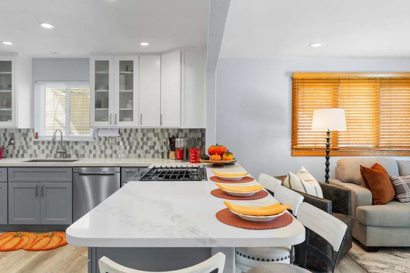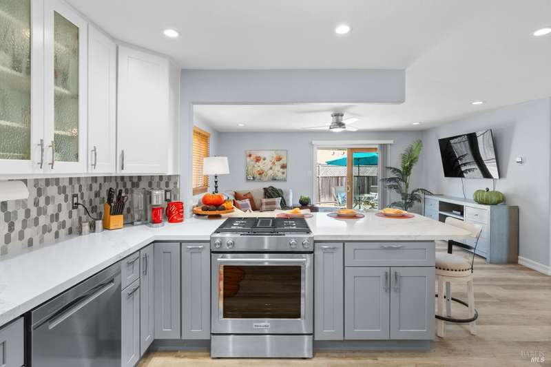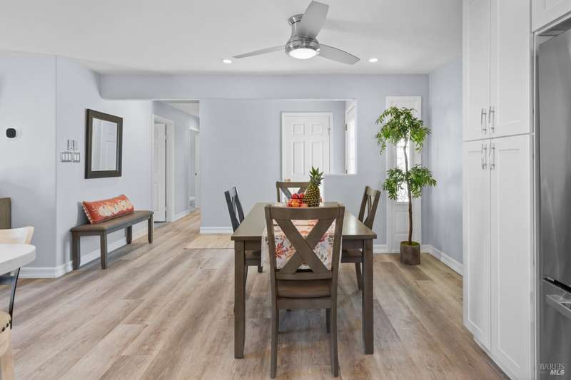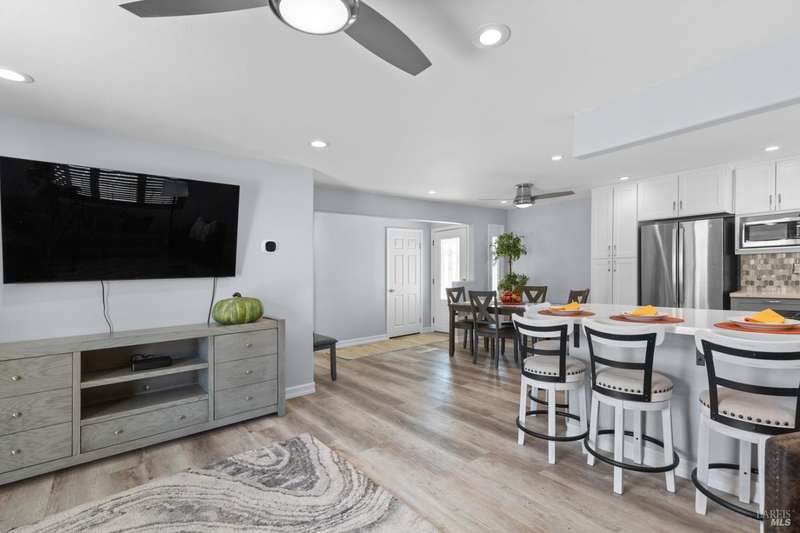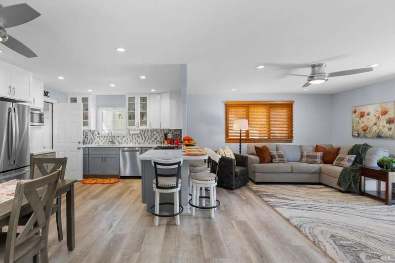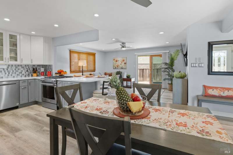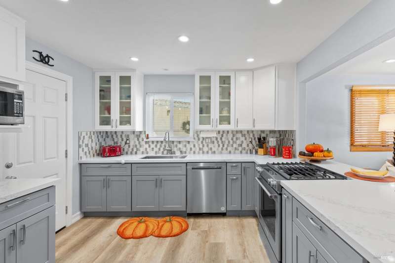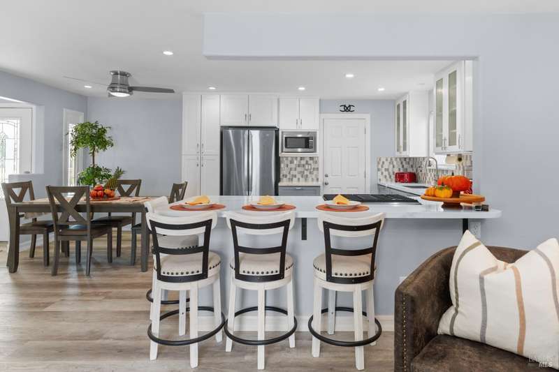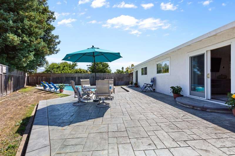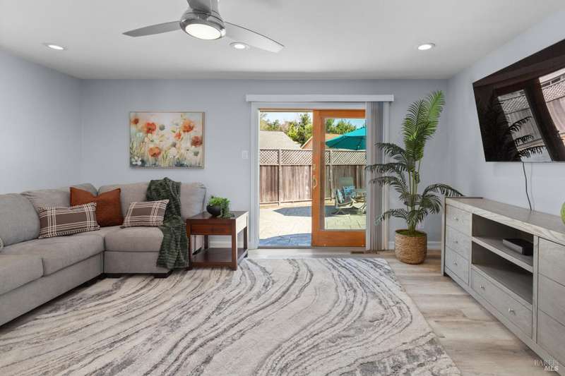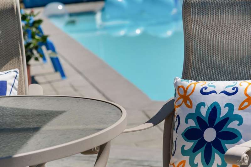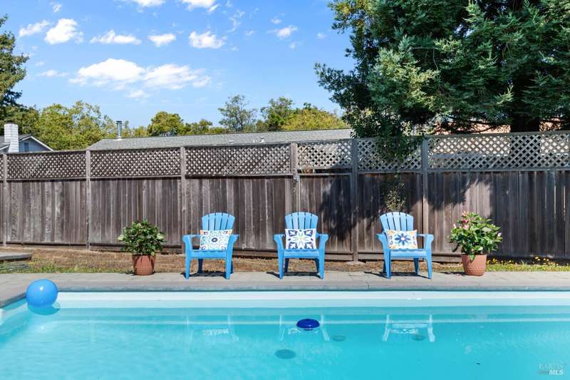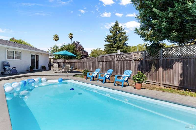 This handsomely updated 3 Bed/2 Bath home is tucked away in a peaceful cul-de-sac in the desirable A-Section of Rohnert Park. Situated on one of the few large, nearly 1/4 acre lots, this property offers privacy, functionality and space! Features include modernized and updated kitchen, bathrooms, interior rooms, along with doors/windows and lux-vinyl flooring throughout, taking into account electrical, plumbing and mechanical components to enhance the spaces. The spacious backyard boasts a custom, stamped concrete patio and in-ground pool with access from both the family room and primary bedroom spaces. There is a pass-thru garage with front/rear overhead door openings offering an open concept workshop area. The large and spacious driveway provides ample room for off-street parking of vehicles, including covered and RV-depth spaces. A detached, updated and unpermitted ADU includes a private entrance, kitchenette, shared bath, washer/dryer and fridge hookups, solar mini-split HVAC, and small water heater ideal for guests, extended family, or student housing. Also a greenhouse for year-round gardening and a large storage shed. Located just minutes from schools, parks, shopping, and other amenities, this turn-key home blends comfort, space, and lifestyle in one exceptional package!