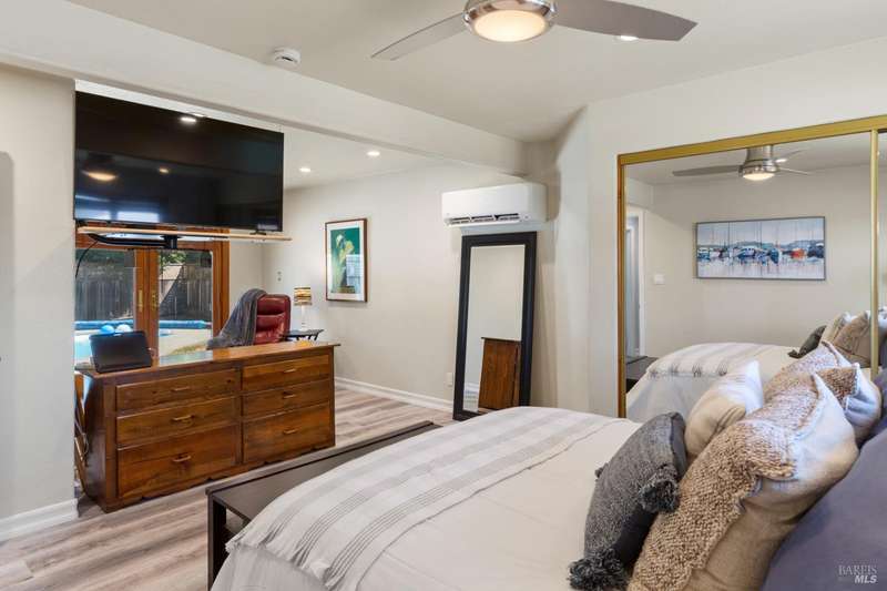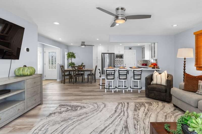 This extensively updated 3 Bed/2 Bath turn-key home with Pool AND a Detached ADU is tucked away in a peaceful cul-de-sac. Situated on one of the few large, nearly 1/4 acre lots, this property offers privacy, functionality and space! Features include modernized and updated kitchen, bathrooms, interior rooms, along with updated doors/windows throughout, including electrical, plumbing and mechanical updates to enhance all the rooms and spaces. The spacious backyard boasts a custom concrete patio with access from both the family room and primary bedrooms. There is a pass-thru garage with front/rear overhead door openings offering an open concept workshop area. The large and spacious driveway provides ample room for off-street parking of vehicles, including covered and RV-depth spaces. The unpermitted ADU includes a private entrance, kitchenette, full bathroom, washer/dryer and fridge hookups, solar mini-split HVAC, and a small water heater ideal for guests, extended family or student housing. Located just minutes from schools, parks, shopping, and other amenities, this home blends comfort, space, and lifestyle in one exceptional package.