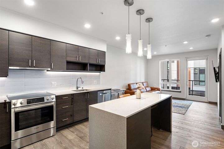 Welcome to The Jade Residences, where modern design meets resort-style living in the heart of Totem Lake. This stunning 1-bedroom plus den/2nd bedroom, 1.75-bath home features soaring ceilings, oversized windows, and luxury finishes throughout – including quartz countertops, stainless steel appliances, and a full-size washer/dryer. Enjoy top-tier amenities: a fully equipped fitness center, rooftop deck with panoramic views, stylish lounge spaces, and even a dog wash station. Just minutes from Totem Lake Village, you'll have easy access to high-end retail, dining, theaters, parks, Evergreen Health Centers, the transit center, and top-rated schools.