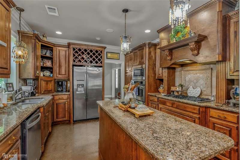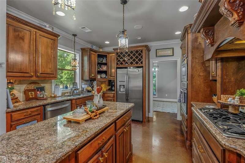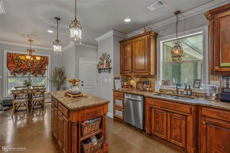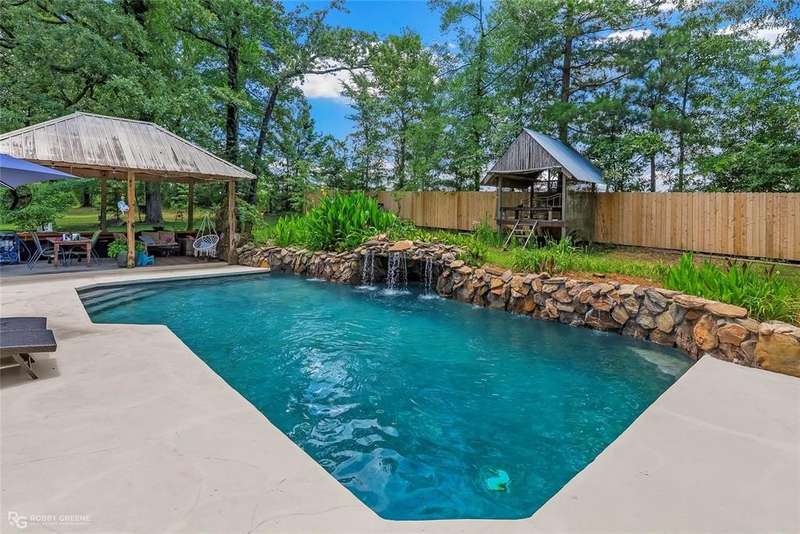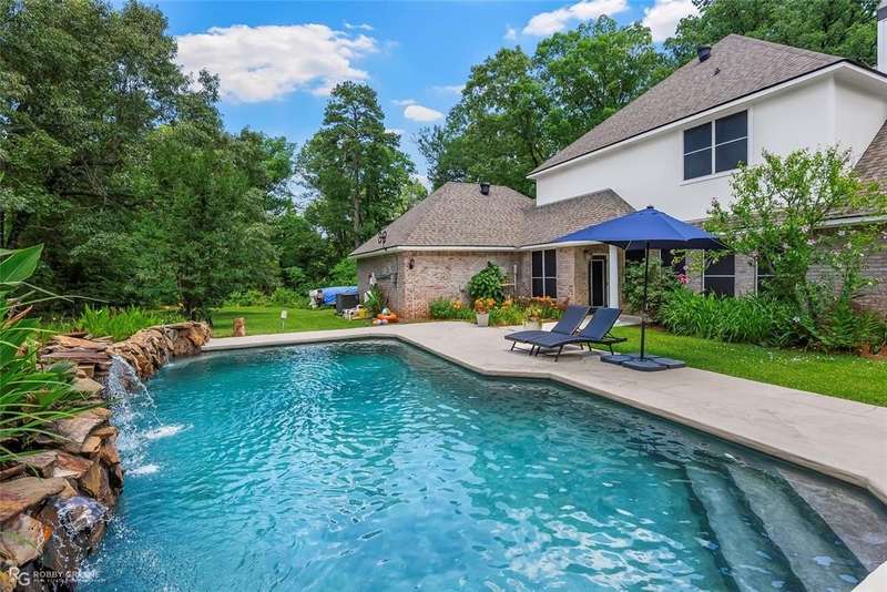 Southern grace meets private luxury on 8.3 acres at this beautiful home in Princeton, LA. Custom built in 2004, this 4-bedroom, 2.5-bath estate offers 2,697 square feet of beautifully curated living space complete with a backyard oasis, charming equestrian space, and timeless Southern appeal. Incredible curb appeal featuring towering white columns, double French doors, and a sweeping front porch. Inside, you’re welcomed by soaring ceilings, stunning crown molding, and rich stained concrete floors. The living room boasts a cozy fireplace and custom built-ins, all overlooking a wall of windows that flood the space with natural light. The gourmet kitchen is a showstopper—adorned with solid wood cabinetry, granite countertops, a gas cooktop, and a built-in wine rack. Light-filled and inviting, the breakfast nook overlooks the backyard and pool, creating the perfect setting for morning coffee. The primary suite is spacious and tranquil, offering tray ceilings, a large walk-in closet, and a connected space ideal for a home office or reading nook. The ensuite bathroom features dual vanities and designer tilework. Each guest bedroom is generously sized with thoughtful finishes, and the stylish bathrooms offer a mix of modern updates and custom design. Outdoors is where this home truly shines! Enjoy summer days in this private paradise by the in-ground pool with a natural rock waterfall, then entertain in the outdoor kitchen and covered pavilion complete with a stone fireplace and ample seating areas for endless lounging. Whether you’re grilling, relaxing, or simply enjoying the peaceful view, this space is designed for unforgettable gatherings. Bonus: A fenced pasture and barn add the perfect touch for horse lovers or hobby farmers seeking both beauty and utility. If you’re dreaming of privacy, charm, and country elegance—this Princeton property is calling you home! Call today for your private showing!