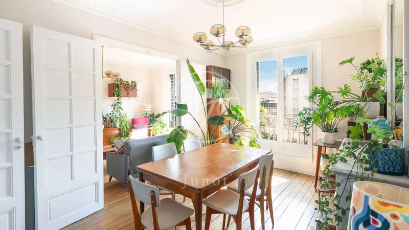 Across from Lariboisière Hospital, just steps from the Barbès metro station, this 61.35sqm (660 sq ft) Carrez Law apartment, located on the fourth floor (with elevator access), boasts a magnificent south-facing double living room with no overlooked views and unobstructed views. This property also features an entrance hall with a fitted and equipped open-plan kitchen, a bedroom overlooking a quiet courtyard, a shower room, and a separate toilet. This dual-aspect apartment has been completely renovated with quality materials while preserving its period charm (wooden floors, moldings, fireplace). It features refined decor, plenty of storage space, and a very well-maintained condominium. A cellar completes this property. EXCLUSIVE.