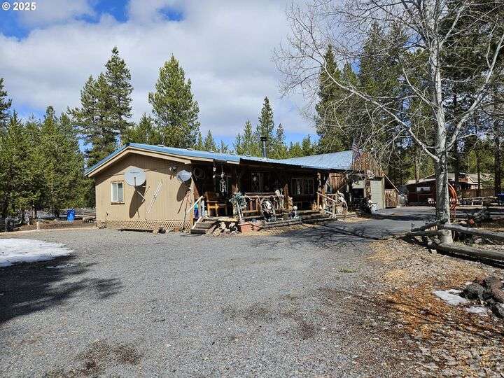 This sweet central Oregon property has everything needed for fun and access to so many local attractions. Log Furniture included. Cozy home with large garage/shop. Storage in several surrounding outbuildings. RV and awning included has been guest quarters.