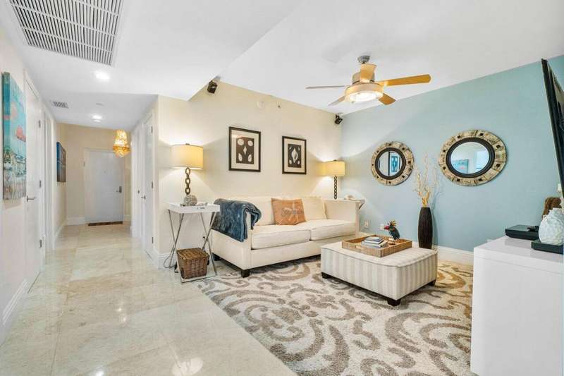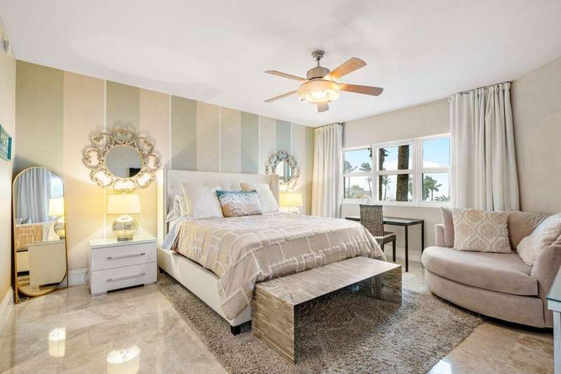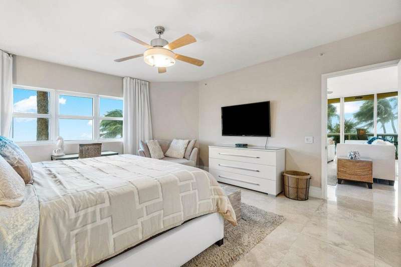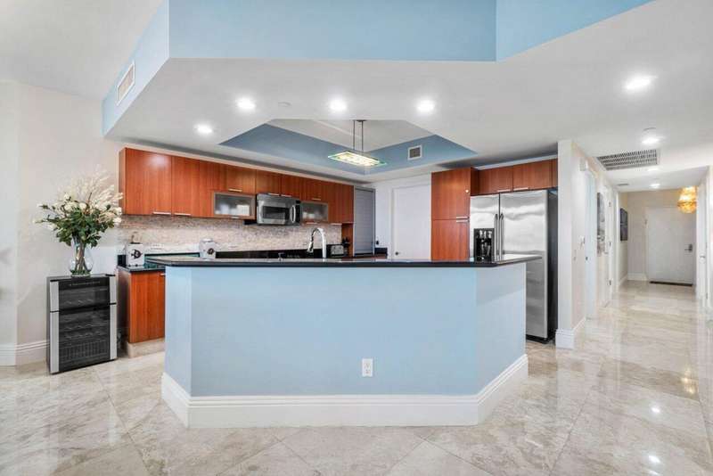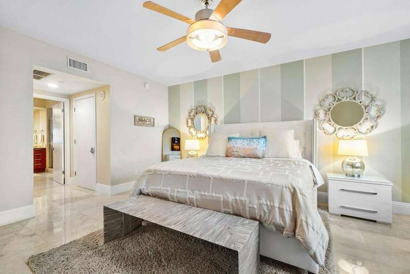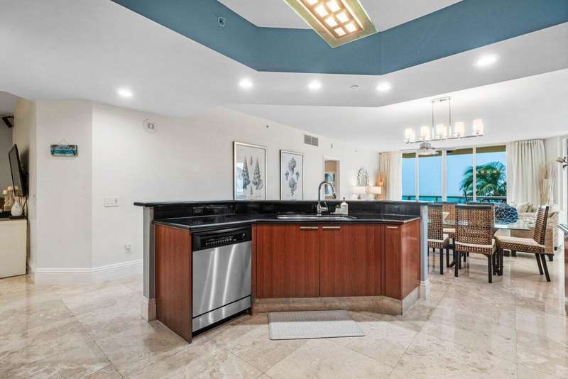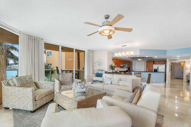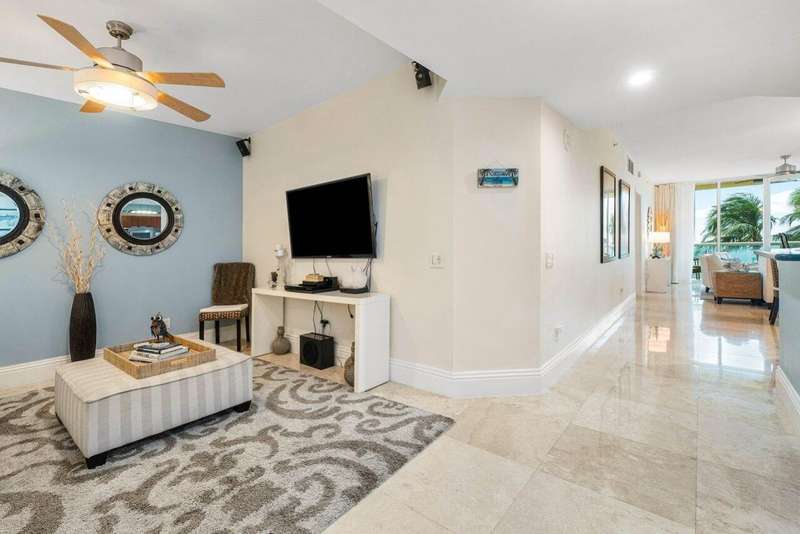 Largest Floorplan in MG! End unit wrap around balcony w/panoramic Intracoastal views! Immaculate 3BR/3.5BA/ with den -condo w/impact glass, Open concept w/spacious great room, den/bonus room, granite kitchen w/stainless appliance & stone backsplash. Split floor plan. Spacious owner suite w/walk-in closet. Spacious owner bath w/double vanity, jetted whirlpool bathtub & water closet.. Neutral paint and marble flooring throughout. 24/7 manned gate, valet, tennis, pickleball, walking path w/gazebo, covered rooftop oasis w/pool, spa, BBQ areas, clubhouse, billiard room & fitness center. Marina w/dry docks available. Jump on your boat effortlessly & be on the ocean in minutes; no fixed bridges!