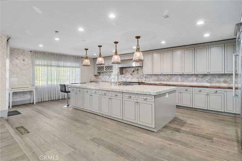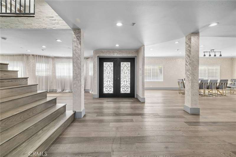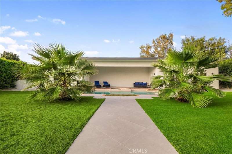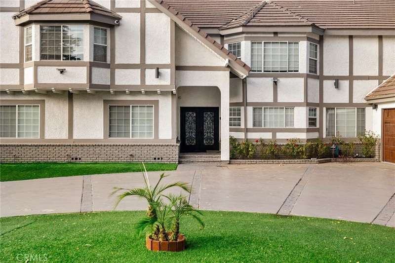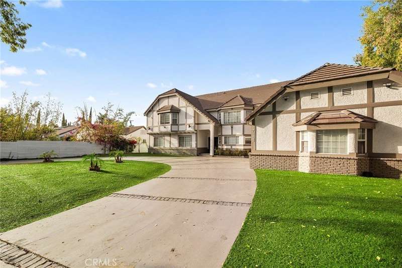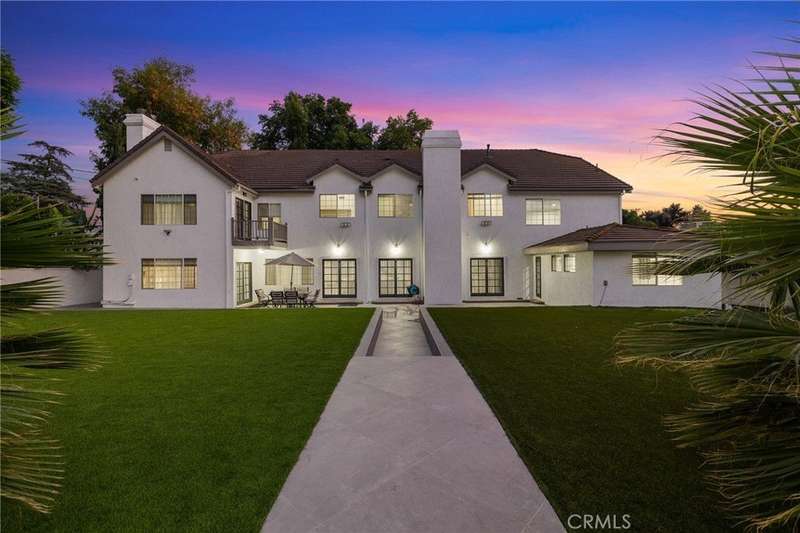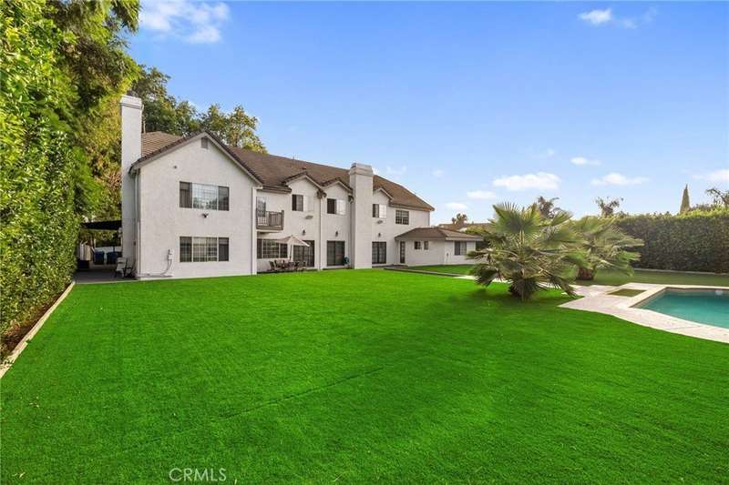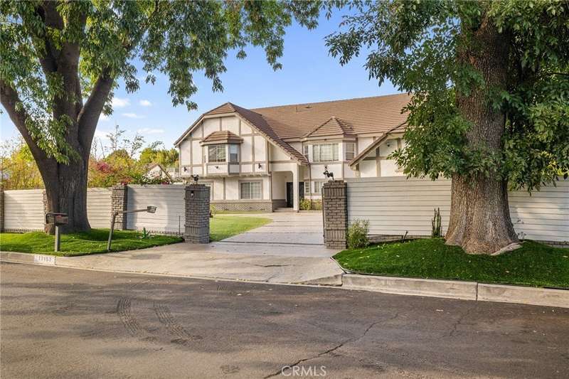 Welcome to this elegantly remodeled estate in the highly desirable community of Sherwood Forest, one of the largest homes in the neighborhood. This 7,007 square foot residence is situated on a rare 21,000 square foot lot. As you enter through the automatic gates, you are greeted by an expansive circular driveway and this modern contemporary Tudor home. The wrought iron double entry glass doors welcome you into a vast open floor plan that includes a grand family room, a sitting foyer, a formal dining room, and a remodeled kitchen. The eye-catching, upgraded oversized kitchen island, complete with custom built-in drawers and a breakfast bar, invites you into a chef's kitchen. All stainless steel appliances and custom cabinetry, accented with brass hardware, enhance your cooking experience. This bright open space is perfect for entertaining and welcoming families. The main floor's west wing features a spacious and desirable first-floor bedroom suite with a walk-in closet and private bath, along with one of two laundry areas. The east wing boasts a beautifully remodeled powder room and guest quarters, complete with a bedroom, a private bath, and an additional room with custom built-in cabinets, ideal for an in-home office or gym. The luxurious double-wide staircase leads you to a total of five upper bedrooms. Two spacious bedrooms are located in the upper east wing, accompanied by a remodeled bathroom in the common area. Two additional bedrooms with a Jack and Jill bathroom and vaulted ceilings are situated in the upper middle area, leaving the entire upper west wing dedicated to the primary suite. The primary suite features high vaulted ceilings, perfect for t for the elegant chandelier that greets you at the double door entrance. Custom built-ins, a retreat area with a fireplace, and a balcony create a cozy atmosphere within this expansive wing. As you enter the barn door-enclosed bathroom, relax in the glass-enclosed mosaic-tiled walk-in shower, complete with multiple shower heads and jets. Alternatively, find sanctuary in the Roman bathtub, perfect for soaking. Pool, large backyard, detached ADU perfect for gym or in laws.