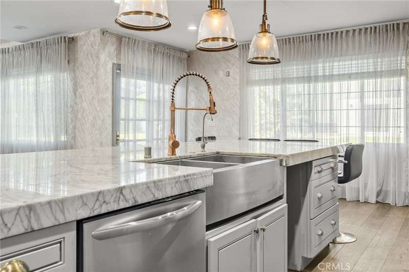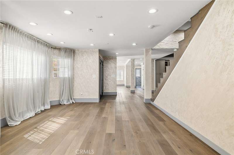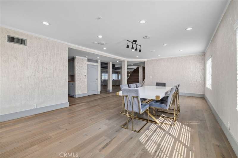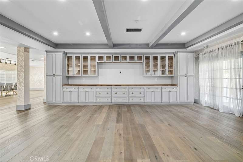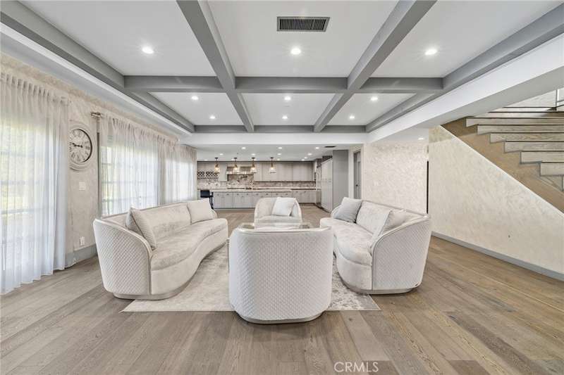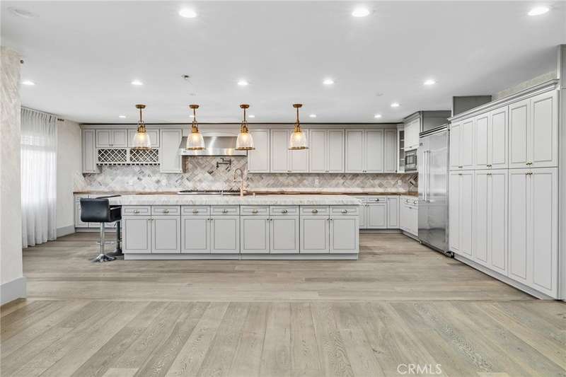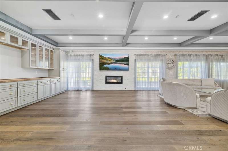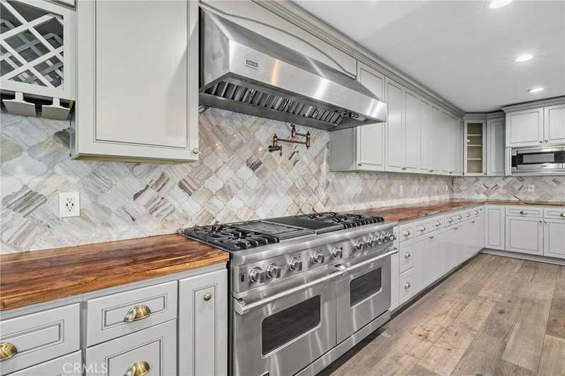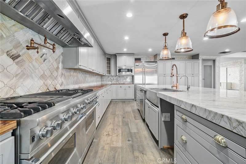 Welcome to this elegantly remodeled estate in the highly desirable community of Sherwood Forest, one of the largest homes in the neighborhood. This 7,007 square foot residence is situated on a rare 21,000 square foot lot. As you enter through the automatic gates, you are greeted by an expansive circular driveway and this modern contemporary Tudor home. The wrought iron double entry glass doors welcome you into a vast open floor plan that includes a grand family room, a sitting foyer, a formal dining room, and a remodeled kitchen. The eye-catching, upgraded oversized kitchen island, complete with custom built-in drawers and a breakfast bar, invites you into a chef's kitchen. All stainless steel appliances and custom cabinetry, accented with brass hardware, enhance your cooking experience. This bright open space is perfect for entertaining and welcoming families. The main floor's west wing features a spacious and desirable first-floor bedroom suite with a walk-in closet and private bath, along with one of two laundry areas. The east wing boasts a beautifully remodeled powder room and guest quarters, complete with a bedroom, a private bath, and an additional room with custom built-in cabinets, ideal for an in-home office or gym. The luxurious double-wide staircase leads you to a total of five upper bedrooms. Two spacious bedrooms are located in the upper east wing, accompanied by a remodeled bathroom in the common area. Two additional bedrooms with a Jack and Jill bathroom and vaulted ceilings are situated in the upper middle area, leaving the entire upper west wing dedicated to the primary suite. The primary suite features high vaulted ceilings, perfect for t for the elegant chandelier that greets you at the double door entrance. Custom built-ins, a retreat area with a fireplace, and a balcony create a cozy atmosphere within this expansive wing. As you enter the barn door-enclosed bathroom, relax in the glass-enclosed mosaic-tiled walk-in shower, complete with multiple shower heads and jets. Alternatively, find sanctuary in the Roman bathtub, perfect for soaking. Pool, large backyard, detached ADU perfect for gym or in laws.