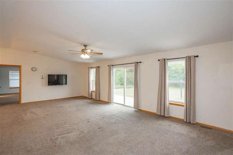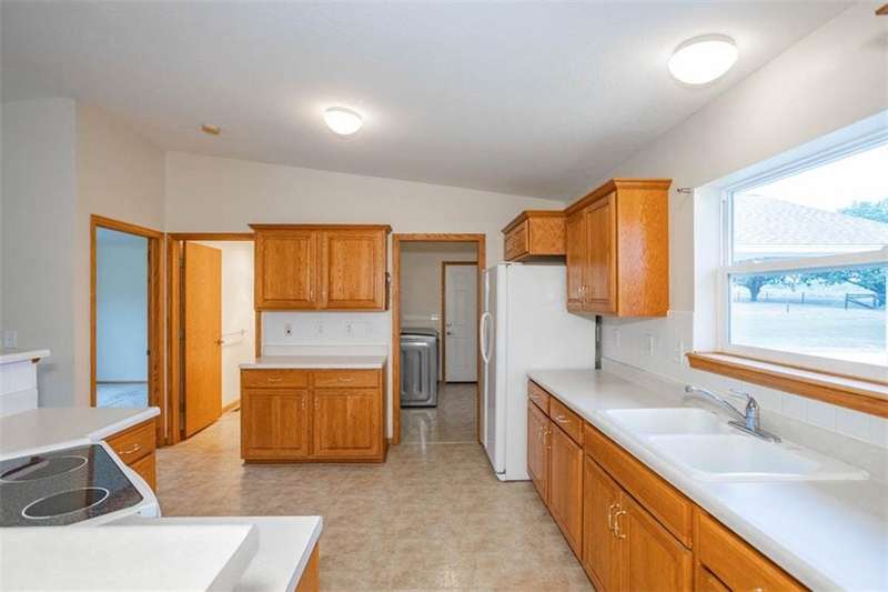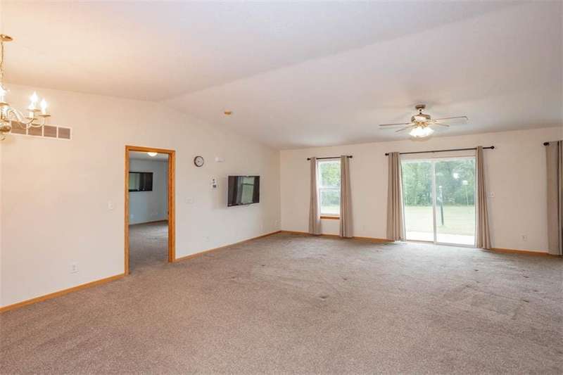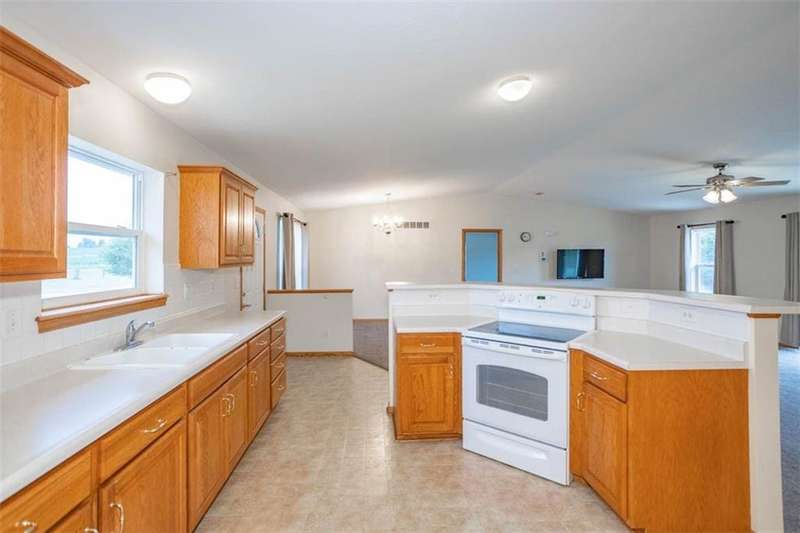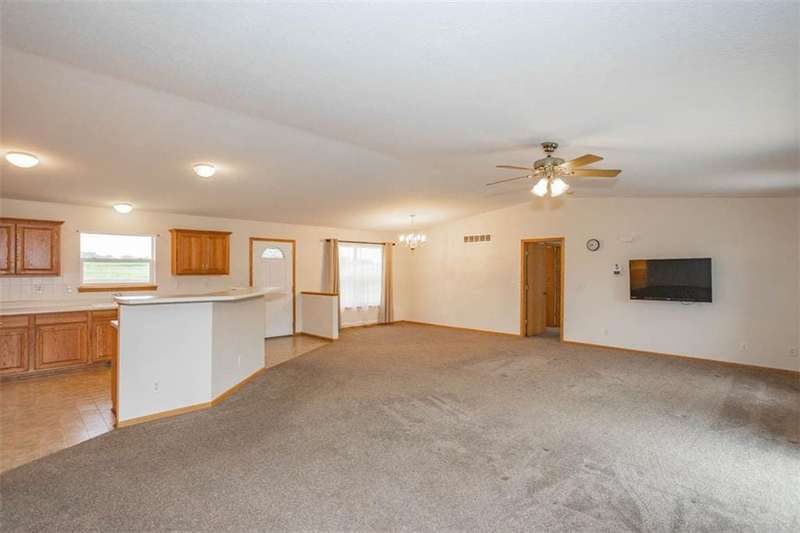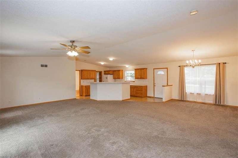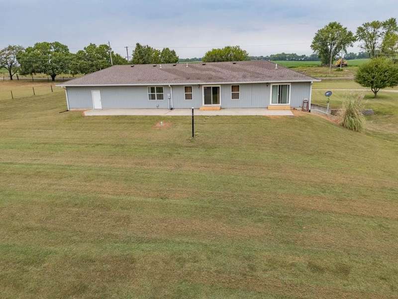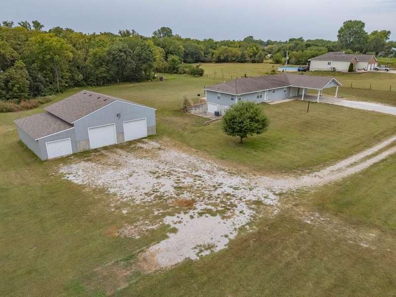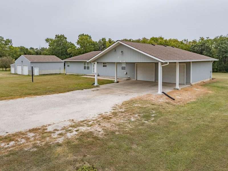 Gorgeous 3.46 flat acres in a prime location. This open RANCH floor plan is super clean and in pristine shape. The kitchen offers an abundance of cabinets and counter space. Oversized master suite with jetted tub and separate shower. Enjoy the huge patio from the living room or master suite. 28x28 attached garage, 38x24 carport (and even one more garage in the basement - side entry that can hold several more. 36x54 detached garage with car lift, compressor and oil tank that stay. New HVAC all in 2016. Paved Roads!