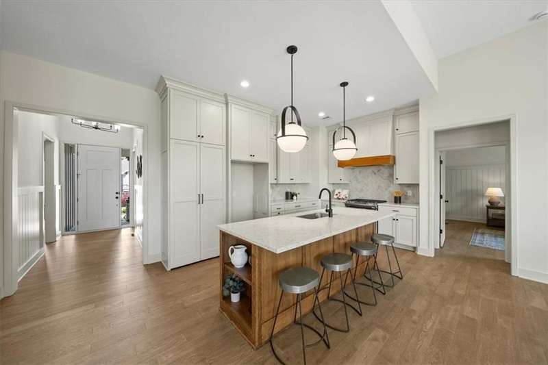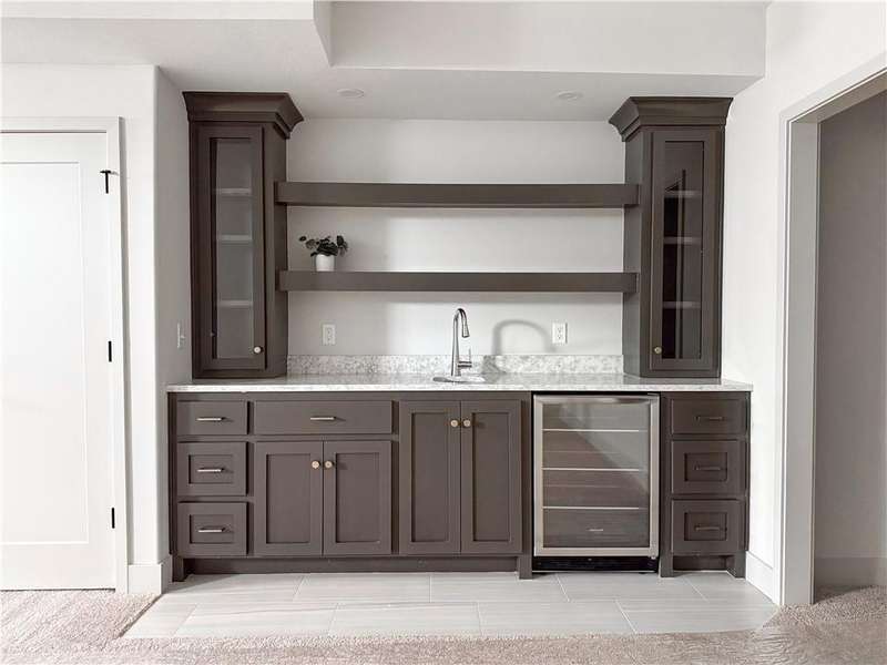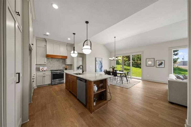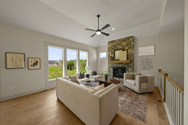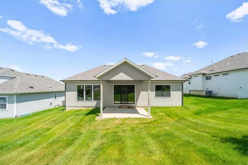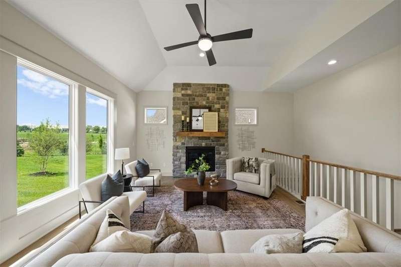 The Ashwood II by Chris George Homes sits on lot 39 tucked into a serene cul-de-sac in Phase I of Bristol Highlands in Shawnee—a rare find with partially treed privacy, thoughtfully designed main-level living and is MOVE-IN READY now! This Ranch-style home offers 3 bedrooms and 2 bathrooms on the main floor, plus a finished lower level with a 4th bedroom, full bath, spacious recreation room, and wet bar. The flow is seamless, with the primary suite connected to the laundry and mudroom for everyday ease. A walk-in pantry, custom cabinets to the ceiling, and a stone-to-ceiling gas fireplace elevate the heart of the home, while the covered patio offers the perfect spot to relax or entertain. Whether you're simplifying or just getting started, this home checks every box—and its location adds extra appeal. At Bristol Highlands, everyday life blends peaceful nature views with nearby conveniences—like Lenexa’s vibrant City Center dining and Shawnee Mission Park’s endless outdoor fun. The upcoming pool, clubhouse, and sport courts are just the start of what’s making this neighborhood one to watch. Add in award-winning De Soto schools (shoutout to Mill Valley!), and it’s clear why homes here are going quickly. Don’t miss your chance to settle in to this community that’s ready to welcome you.